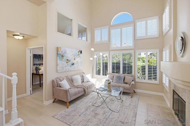 Welcome home to this bright end-unit in the highly coveted Camellia Valley Halcyon community! This 1,604 sq. ft. townhome combines a functional layout with an airy, open feel, highlighted by soaring high ceilings and expansive windows that fill the home with natural light from three sides. The home offers flexible living with a full bedroom and bathroom on the entry level, ideal for a home office, guest suite, or multi-generational living. The kitchen features a brand-new stainless-steel gas range and a high-performance hood with external exhaust, perfect for cooking enthusiasts. Throughout the home, you’ll find luxury vinyl flooring and plantation shutters that add both style and practicality. An oversized patio off the dining area creates a seamless indoor-outdoor flow, ideal for BBQs and entertaining. The spacious primary suite serves as a true retreat with dramatic high ceilings, enhancing its open and relaxing feel. An attached 2-car garage provides convenience along with additional storage space. Located in a prime San Diego pocket, you’re just minutes from parks, shopping, and top-tier education, with assignment to highly rated schools including Carmel Creek Elementary School right across the street. Clean, well-maintained, and attractively priced, this home presents a rare opportunity to move into a premier neighborhood and make it your own.