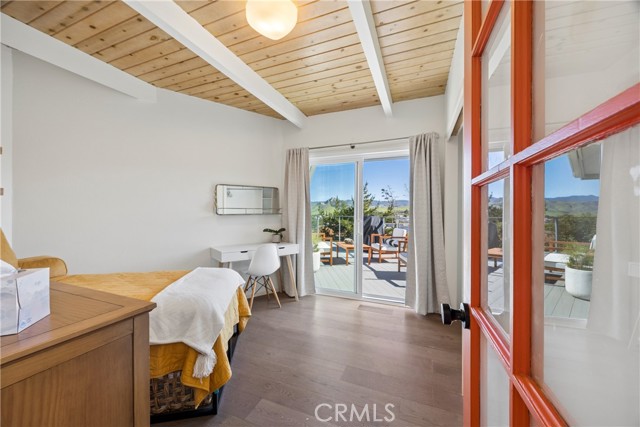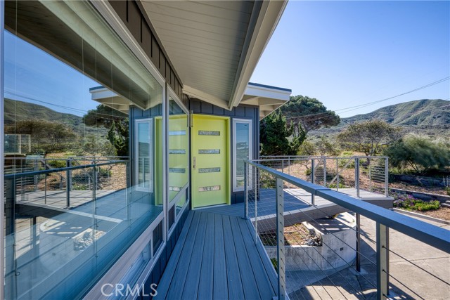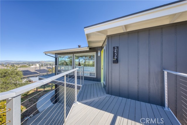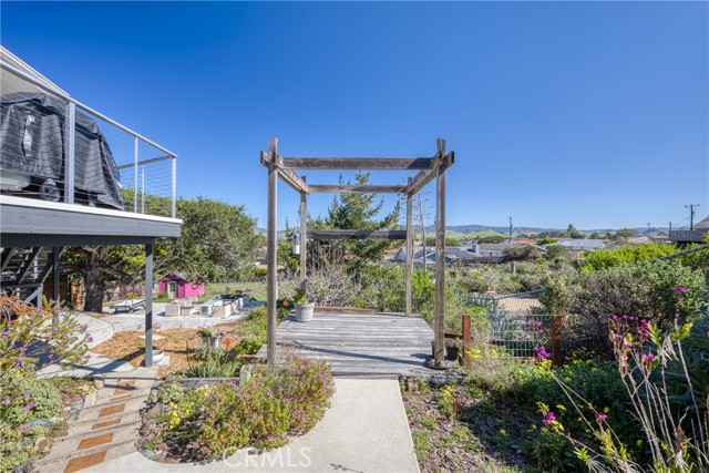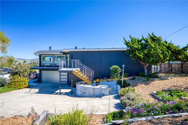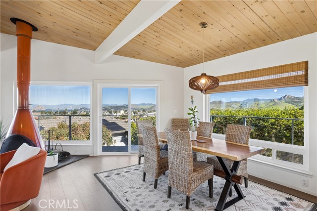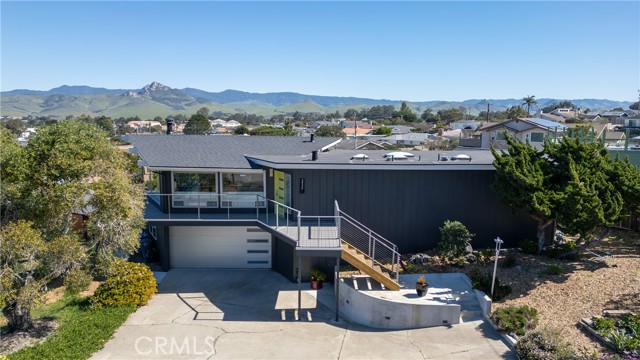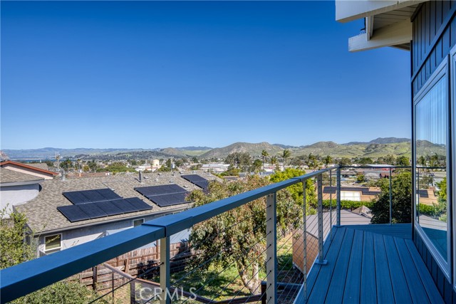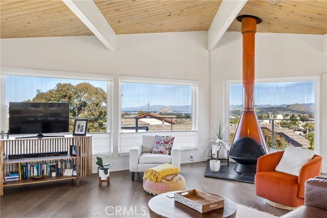 Wake up to breathtaking views of Morro Rock and the Pacific Ocean in this beautifully updated custom home, complete with a charming 170 sq ft detached casita. This 3-bedroom, 2-bath residence blends comfort and style with an open-concept layout, soaring open-beam ceilings, and rich Mohawk engineered wood flooring throughout. Expansive windows flood the home with natural light while perfectly framing the stunning coastal scenery, and a vintage wood-burning stove adds a warm, mid-century modern touch. Each bedroom offers direct access to the view deck, including the spacious primary suite—creating a seamless indoor-outdoor living experience. Designed for both relaxation and entertaining, the property features multiple decks and inviting seating areas, and a generous patio adjoining the casita—ideal for guests, a home office, or creative studio. Set on an expansive half-acre lot, the grounds offer endless opportunities for gardening and outdoor enjoyment, complete with a dedicated garden shed. An oversized two-car garage provides ample storage and convenience. Located just across from open space with scenic hiking, biking, and equestrian trails, and only minutes from the ocean, this exceptional property delivers the perfect blend of tranquility, recreation, and coastal living.