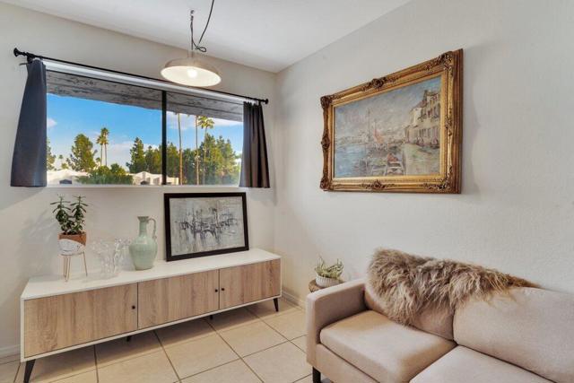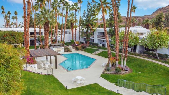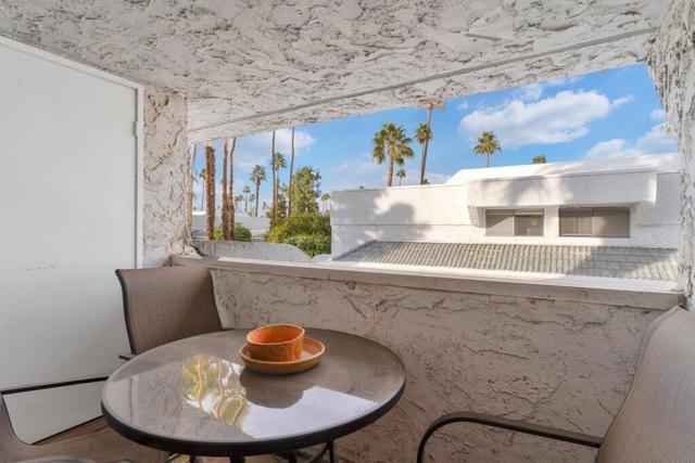 Top Floor Updated Condo with 2 bedrooms, and 2 bathrooms. Open Floor Plan with washer and dryer. Palm Canyon Villas is centrally located and just minutes away from restaurants, shopping, movies, and nightlife. The complex offers pools, spas, and tennis courts for your enjoyment. Short Terms Rentals are allowed with a 5-day minimum.HOA covers water, sewer, and trash. One assigned carport parking space.