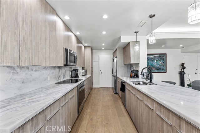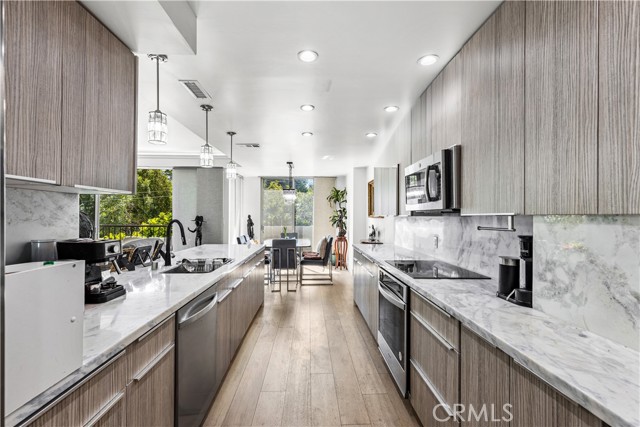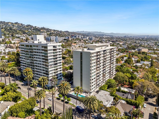 Experience luxury at Doheny Plaza, perfectly positioned on Doheny Drive at the border of Beverly Hills and West Hollywood. This prime location offers easy access to entertainment, dining, and boutiques. Built in 1963, this full-service concierge building features a sleek mid-century design. Both the building and the unit have been tastefully remodeled for privacy and luxury. The spacious, light-filled unit boasts a private balcony with floor-to-ceiling glass doors, providing serene treetop and hillside views. Totally remodeled, the lights and tv are Alexa programable , hardwood floors throughout, rare Brazilian stone kitchen counter tops and European style cabinets. Building amenities include a banquet room/clubhouse, swimming pool, sun deck, security, and valet parking. HOA dues cover valet, basic cable, and water. This quiet, south-facing back unit includes 2-car tandem parking. Washer and dryer can be added in the unit. Building has add 2 guest rooms that are available for rent for the residents, also the unit has all new electrical and plumbing, heated salt pool all year.