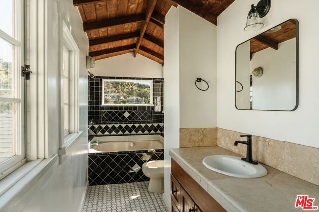 Tucked into the hills of Laurel Canyon, this 1923 bungalow captures the charm and ease of canyon living in one of LA's most iconic settings. Filled with natural light, the home blends vintage character with a relaxed, livable layout that feels both warm and inviting. The interior features hardwood floors, a cozy living room anchored by a decorative fireplace, and a dining room, while the upper level offers one bedroom, a spacious walk-in closet, and a full bathroom. The spaces are comfortable and functional, with an easy flow that makes everyday living feel effortless. Outdoor patios open to canyon views, offering multiple spots for al fresco dining, morning coffee, or winding down under the trees. A two-car garage adds convenience, while the setting feels tucked away and peaceful. A flexible bonus space with a half bathroom is ideal for a home office, studio, or gym. Located within the coveted Wonderland School District and just moments from the Canyon Country Store and Pace, one of the most romantic dinner spots in the city, the home offers a unique balance of serene canyon living and quick access to the energy of Hollywood and the Sunset Strip. A classic Laurel Canyon retreat, ready to be enjoyed.