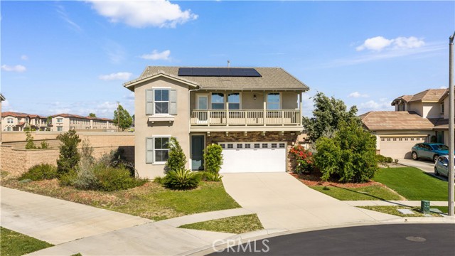 Welcome to one of the most sought-after residences within the prestigious gated community of Cornerstone. This meticulously maintained home offers approximately 2,749 square feet of thoughtfully designed living space, featuring 5 bedrooms and 3 bathrooms on a generous 7,366 square foot lot. Built in 2016, the home seamlessly blends modern functionality with timeless design. The main level showcases a versatile multi-purpose room, ideal as a formal living area, executive home office, private gym, or elegant tearoom. A full bathroom on the first floor enhances convenience, perfectly suited for guests or multi-generational living. At the heart of the home is a beautifully appointed gourmet kitchen, complete with stainless steel appliances, granite countertops, an oversized center island, and a spacious walk-in pantry. The open-concept layout flows effortlessly into the dining and living areas, creating an inviting space ideal for both everyday living and entertaining. Upstairs, you will find four generously sized bedrooms, including a luxurious primary suite designed for comfort and relaxation, featuring dual vanities, a soaking tub, a separate walk-in shower, and an expansive walk-in closet. An additional full bathroom and a spacious loft provide flexibility and functionality for a variety of lifestyles. The backyard is thoughtfully designed for low maintenance while offering ample space for outdoor enjoyment, whether relaxing or hosting gatherings. Residents of Cornerstone enjoy resort-style amenities, including a sparkling pool and spa, BBQ areas, clubhouse, and community park, all within a secure 24-hour gated environment and with a low HOA. Ideally located near award-winning schools, premier shopping and dining destinations such as Victoria Gardens and Ontario Mills, and offering convenient access to major freeways, this exceptional home delivers both luxury and convenience. This is a rare opportunity to own one of the most desirable floor plans in the community. Schedule your private showing today.