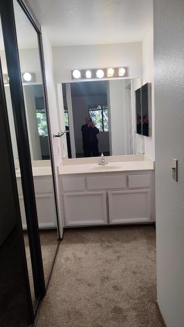 This is a second level spacious condo with 2 large size bedroom and 2 full baths with a laundry room. The living room boast a wood burning fireplace and outside balcony. There is a dining room and kitchen bar adjacent to each other. The unit has been newly painted with new carpets throughout except for new linoleum in the kitchen, bathrooms aand laundy room. It is an end unit with only one common wall. It is in easy walking distance to the adjacent lake with trails. The complex haa large pond area in the center of the complex with trails. There is easy access to 85 and 87 freeways within minutes. Westfield Shopping Center and variety of restaurants close by but far enough without the noise. The HVAC system is realtively new with A/C and heat controlled by a setback thermostat. All applicants require pre-qualification before showing. .