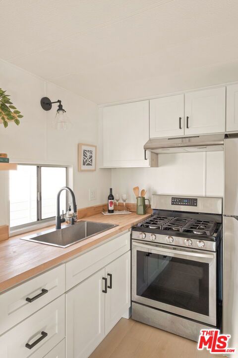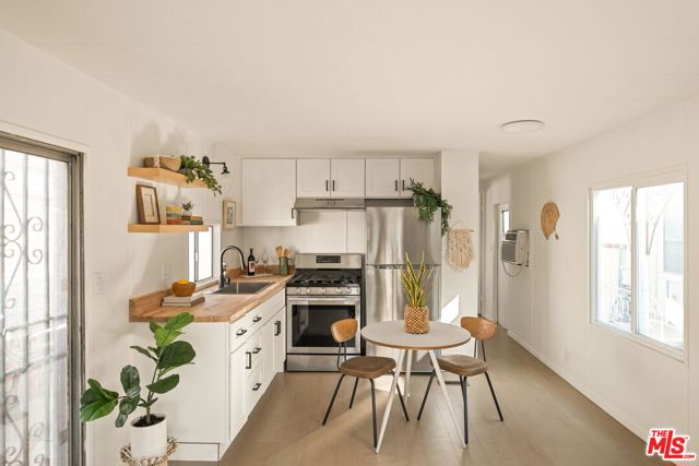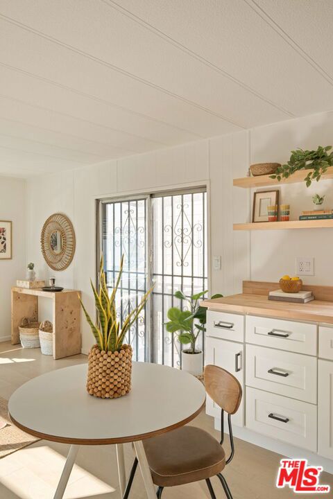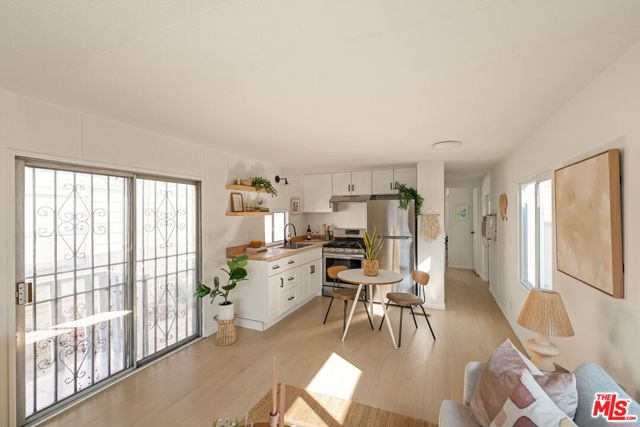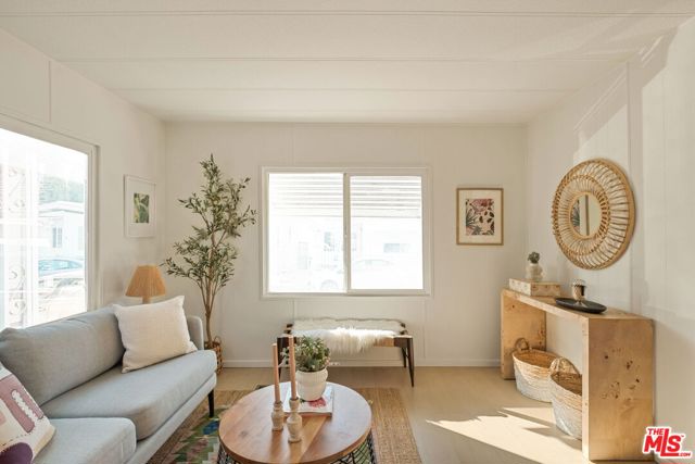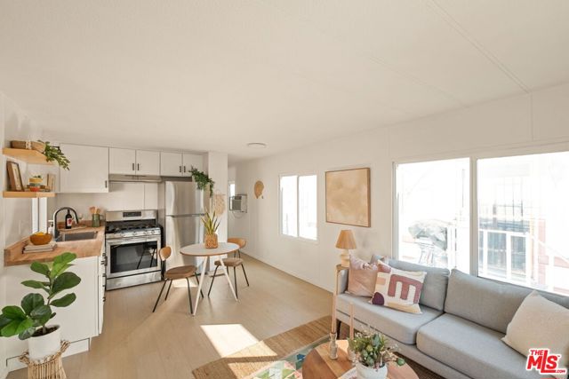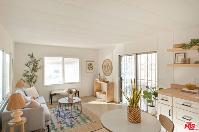 Welcome to this beautifully updated one-bedroom, one-bathroom home in the highly desirable Culver City Terrace. Tucked into a gated community, this is a rare opportunity to purchase one of the few non-income restricted homes in this resident-owned park. The exterior is lovingly framed with potted plants, and your very own covered patio area, perfect for dining al fresco. The open-concept living space is bright and airy, featuring an updated kitchen with white shaker cabinetry, butcher block counter tops, open shelving, and stainless steel appliances. The wide plank flooring carries throughout the entire home, unifying the living space. The bathroom includes a re-finished tub with shower, a built in vanity, and updated fixtures. The bedroom is flooded with natural light and is located at the rear of the home, for optimal privacy. With central heating, a wall AC unit, outdoor storage and a dedicated parking space directly out front, you'll have every accommodation you need to live a serene lifestyle. Amenities in the community include a recreational center with free wifi, and a communal laundry room. Ideally located by Fox Hills Westfield Mall, Trader Joe's, and trendy restaurants and shops, this property is central to some of Culver City's most desirable spots. If you're looking to explore other areas, you can enjoy the convenience of proximity to the 405 and 90 freeways, local transit options, and LAX. Experience the perks of owning your own home, while benefitting from the peaceful community and ideal location that this park provides! With a monthly assessment of only $440 / month, this is one of the lowest priced mobile home parks in Los Angeles.