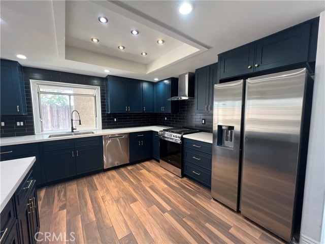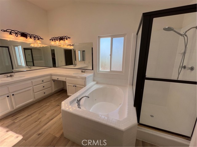 Beautifully upgraded and thoughtfully designed, this spacious 5-bedroom, 3-bath residence offers approximately 2,550 square feet of refined living space, complete with a 3-car garage and an elevated lot providing scenic neighborhood views. Step inside to an open and airy floor plan highlighted by vaulted ceilings and an abundance of natural light. The newly remodeled kitchen showcases modern finishes, stainless steel appliances, and seamless flow into the main living areas—perfect for both everyday living and entertaining. The home features a formal living room, family room with a cozy fireplace, and a dedicated dining area, creating multiple spaces to relax and gather. A highly desirable main-level bedroom and full bathroom provide flexibility for guests, extended family, or a home office setup. Upstairs, the expansive primary suite serves as a private retreat, featuring dual closets, a wraparound vanity, soaking tub, and separate walk-in shower. Step out onto the private deck directly from the primary suite and enjoy elevated views, with convenient access down to the backyard—ideal for indoor-outdoor living. Situated above neighboring homes, the property offers added privacy and a peaceful setting. Additional highlights include generous room sizes, functional layout, and ample parking/storage with the 3-car garage. Conveniently located near shopping, dining, and commuter routes, this home combines comfort, style, and functionality in one exceptional lease opportunity.