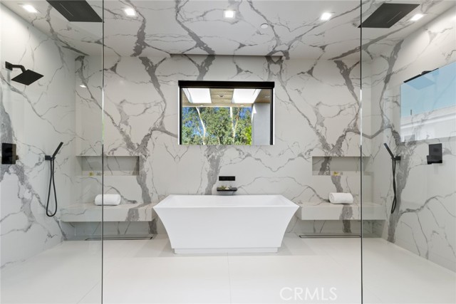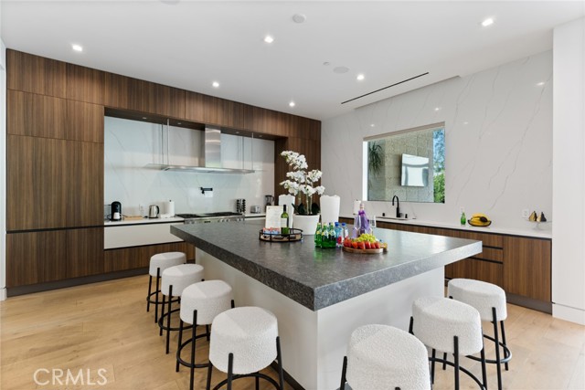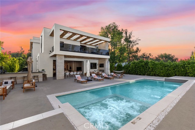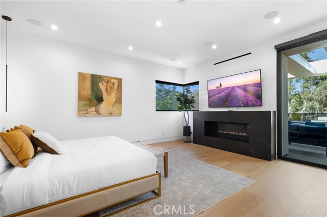 Available furnished for short-term lease (30-day minimum) or long-term tenancy, this extraordinary newly constructed modern estate offers an exceptional blend of architectural sophistication and resort-style living. Privately gated and introduced by a serene courtyard entry, the residence makes an unforgettable first impression with dramatic scale, soaring ceilings, and a beautifully designed open-concept floor plan. Inside, a stunning great room is anchored by a floor-to-ceiling fireplace and flows effortlessly into a magazine-worthy chef’s kitchen curated for both everyday living and elegant entertaining. Rich European cabinetry, exquisite stone finishes, an oversized center island, and top-of-the-line Miele appliances — including double ovens, microwave, refrigerator/freezer, and a 5-burner range — create a kitchen that is as functional as it is luxurious. An adjacent catering kitchen and butler’s pantry add an exceptional level of convenience. Spanning over 6,000 square feet, the home features five spacious en-suite bedrooms and impeccable custom finishes throughout. Expansive walls of glass, oversized windows, and disappearing doors flood the interiors with natural light while creating a seamless connection to the outdoors, capturing the essence of California indoor-outdoor living. A sculptural floating staircase leads to the upper level, where a covered terrace with glass accents offers an additional space to relax or entertain. The primary suite is a true sanctuary, evoking the ambiance of a five-star hotel with its own fireplace, private balcony, oversized walk-in closet with center island, and a breathtaking spa bath featuring dual vanities, a soaking tub, and an oversized marble walk-in shower. Designed for exceptional entertaining, the backyard showcases a resort-style pool and spa, covered patio, built-in barbecue, and a full outdoor kitchen surrounded by lush designer landscaping. A beautifully appointed en-suite pool house/cabana and a brand-new stadium-style state-of-the-art pickleball court further elevate the property’s private resort atmosphere. Additional highlights include electronic gates, smart home integration, alarm system, integrated sound, security cameras, and an impressive collection of premium amenities throughout.