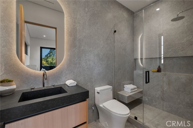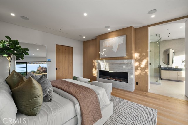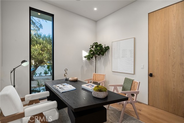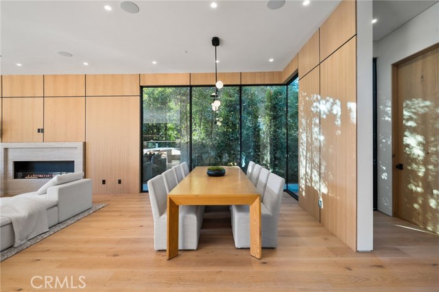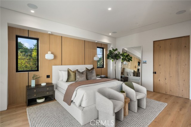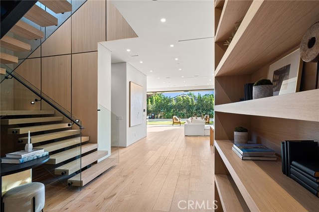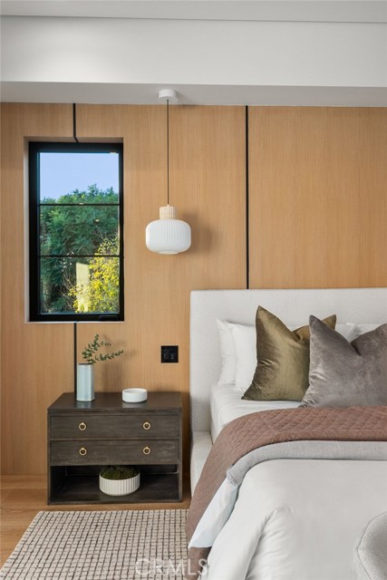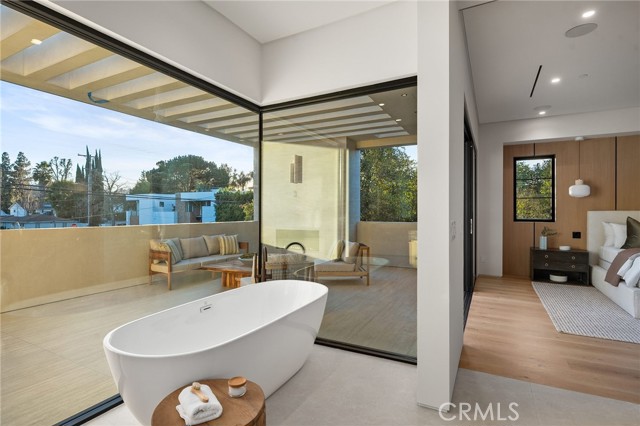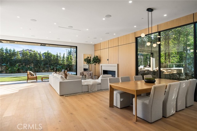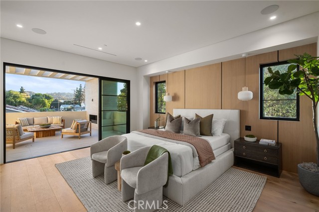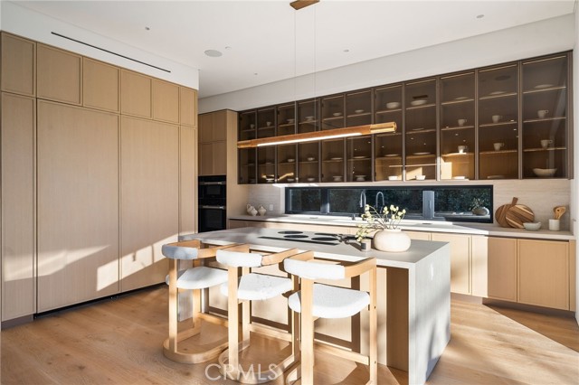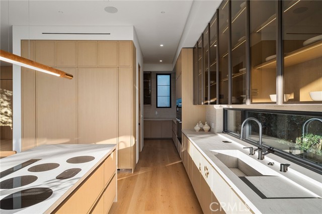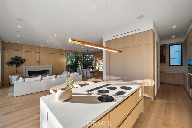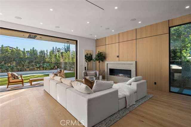 Welcome to an exceptional newly constructed modern estate by the highly regarded MLR Development, ideally situated within the coveted Kester Elementary district of Sherman Oaks. Designed with both sophistication and functionality in mind, this residence offers an elevated living experience defined by refined finishes, expansive volumes, and seamless indoor-outdoor integration. A dramatic entry introduces soaring ceilings and a striking floating staircase, setting the tone for the home’s architectural elegance. The open-concept layout effortlessly connects the living, dining, and kitchen spaces—creating an ideal environment for both grand entertaining and everyday living. At the heart of the home, the chef’s kitchen is a true showpiece, appointed with custom Italian-style cabinetry, an oversized center island, and a suite of premium Miele appliances, including double ovens and a built-in coffee system. A well-equipped butler’s pantry with additional prep space and a generous walk-in pantry enhances both convenience and storage. The residence features four spacious bedrooms, each designed as a private retreat with beautifully appointed en-suite bathrooms showcasing sleek tile work and spa-inspired finishes. The primary suite is a sanctuary unto itself, complete with a stone fireplace, an expansive walk-in closet, and a luxurious bath featuring a freestanding soaking tub, dual vanities, and an oversized rain shower. A private terrace off the suite, highlighted by a built-in fireplace, offers a serene escape. Additional amenities include a generously sized upstairs laundry room with sink, integrated Control4 smart home technology, surround sound, and energy-efficient systems, all complemented by abundant natural light streaming through floor-to-ceiling glass. The outdoor setting is equally impressive, designed for year-round enjoyment with a covered patio, stone fireplace, recessed heaters, and a resort-style pool and spa. A fully equipped outdoor kitchen featuring a built-in barbecue, pizza oven, and smoker, along with a grassy yard, creates the ultimate space for entertaining. Ideally located just moments from premier dining, shopping, and top-rated schools, this home offers a rare combination of modern design and intimate warm luxury Unfurnished property.