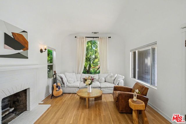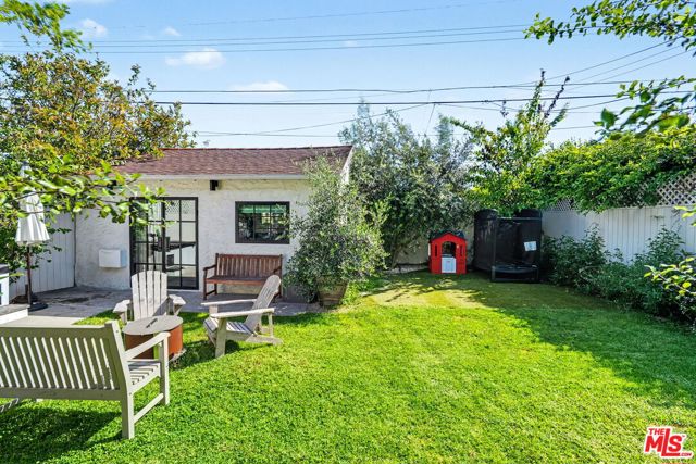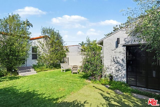 A delightful Spanish-style home on a charming Beverlywood street, this fully remodeled 3-bedroom, 2-bath residence offers warmth, character, and thoughtful updates. A gated driveway with electrical car charging and an enclosed front yard provide privacy and lead to a beautiful courtyard that creates a seamless connection between the home's indoor and outdoor spaces. The formal living room features a decorative fireplace and a large picture window overlooking the front yard and surrounding trees. Filled with natural light, the nicely sized kitchen offers granite countertops, stainless steel appliances, and opens to the dining room for easy everyday living and entertaining. All three bedrooms are sunny, well proportioned, and inviting. The primary bedroom includes direct access to the backyard along with a newly added en suite bathroom. The second bathroom has also been stylishly updated. The property offers a grassy backyard, generous side yards, and a detached two-car garage that has been remodeled into a beautiful approximately 500-square-foot guest house or bonus living space with its own bathroom. The entire home has been extensively updated throughout while preserving its original charm, with details such as hardwood floors, arched doorways, updated plumbing, beautiful landscaping and crystal doorknobs. Ideally located in the award-winning Castle Heights Elementary School district and close to the shops and restaurants.