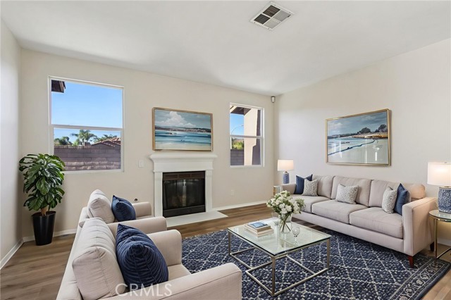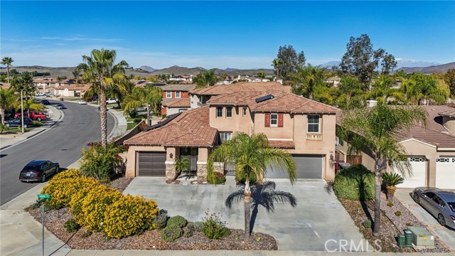 Executive Living in the Highly Desirable Morning Star Ranch Community of Winchester Welcome to this expansive and beautifully updated executive residence, offering the ideal blend of luxury, comfort, and versatility. Located in the sought-after Morning Star Ranch community, this 2-story home features 4 spacious bedrooms, including a main-level primary suite, and 2.5 bathrooms, with a generous 3,157 square feet of thoughtfully designed living space. Enjoy cozy evenings by two gas fireplaces—one in the main living room and another in the family room—adding warmth and charm throughout. Situated on a premium corner lot at the entrance of a quiet cul-de-sac, this home enjoys exceptional privacy, enhanced curb appeal, and a sprawling 8,712+ square foot lot. A charming private courtyard entry with a tranquil fountain welcomes you into this elegant home. Step inside to a freshly updated interior, showcasing new paint and modern flooring throughout, setting the stage for stylish and comfortable living. The gourmet kitchen is a chef’s dream—perfectly equipped for both everyday functionality and effortless entertaining. This home offers unique features, including a separate double-door entry to a private room ideal for a home office, guest suite, or potential ADU, providing flexibility for multigenerational living or rental income potential. The three-car attached garage adds incredible utility. This home is equipped with high-efficiency solar panels. Additional highlights: • No HOA • Lower property taxes • Close proximity to top-rated schools, parks, shopping, medical facilities, and Temecula Wine Country This is a rare opportunity to own a one-of-a-kind home in one of Winchester’s most desirable neighborhoods. Temecula School District. A true must-see!