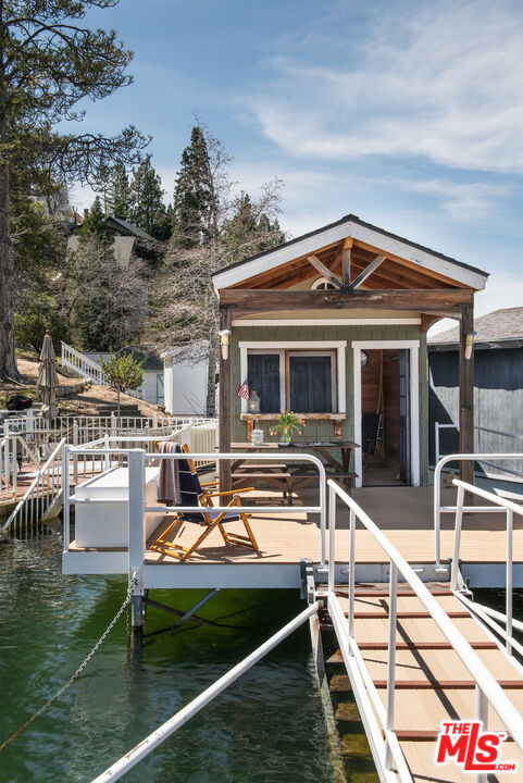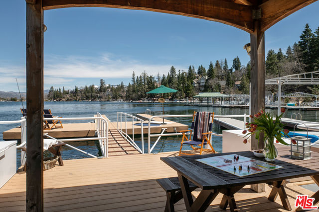 Rare opportunity to own an exceptional 1/2 double dock in the highly sought-after Palisades Point area of Lake Arrowhead. Ideally located near the newly constructed Arrowhead Lake Association bathrooms, this oversized, grandfathered dock offers dimensions and usability that are increasingly hard to find. Set in calm, deep water, the dock enjoys a prime east-facing orientation, perfect for sun-filled mornings and long, bright days on the lake. The approach opens to a spacious Trex pier, creating an inviting setting for lounging, entertaining, or simply taking in the serene surroundings. At the heart of the dock is a beautifully designed dock house with timeless nautical character, enhanced by high-end hardwood finishes and durable Hardie shingle siding. The pass-through bar and covered pier create a seamless indoor-outdoor flow ideal for all-day and evening enjoyment. Thoughtfully designed cantilevered dock boxes provide convenient storage without sacrificing space or aesthetics. The dock, gangway, and pier are all constructed with low-maintenance Trex decking, ensuring lasting quality and ease of ownership. Framed by mature trees and a picturesque shoreline, this location offers both privacy and proximity, an ideal balance for the Lake Arrowhead lifestyle. Additionally, the sellers own the adjoining dock and are open to selling the full double dock presenting a rare chance to secure an entire dock with a friend or family member. A standout offering combining size, craftsmanship, location, and lifestyle.