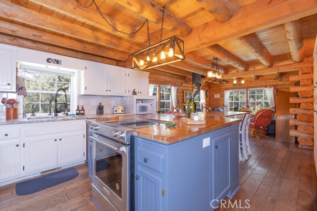 Charming Log Home on a Spacious R-3 Lot 2505 Brentwood Place, Pine Mountain Club, CA Nestled in the beautiful mountain community, just north of Los Angeles and surrounded by 1.7 million acres of Los Padres National Forest, this authentic log home offers the perfect blend of privacy and convenience. Tucked away on a quiet cul-de-sac yet close to the village center, this well-maintained home features soaring high ceilings in the living room with a striking real brick fireplace — ideal for cozy evenings. The remodeled kitchen is a standout, featuring a stunning one-piece wood countertop that seamlessly connects the kitchen island to the breakfast bar in a unique “Teppanyaki style.” This flows beautifully into the sunny dining area and sunroom, which includes its own wood-burning stove — long a favorite gathering spot for snowy mornings. Step outside to enjoy three generous decks, including two covered ones on the east and south sides, plus a large back deck perfect for relaxing on pleasant summer afternoons and evenings. Upstairs, a gorgeous private loft with skylights and an efficient wood-burning stove leads to the spacious master bedroom and full bath. Wood flooring runs throughout the home, complemented by a dedicated laundry room and a two-car detached garage. The oversized 1,200-gallon septic tank offers excellent potential for a 4th bedroom addition — be sure to ask your agent, the clubhouse, or Kern County about the R-3 zoning possibilities. Exceptionally maintained with thoughtful attention to detail around every corner, this log home is move-in ready. Whether you're looking for year-round mountain living or a fantastic vacation rental opportunity, this rare find delivers warmth, character, and endless outdoor adventure right at your doorstep. This special property will not last long. Call today to schedule your private showing!