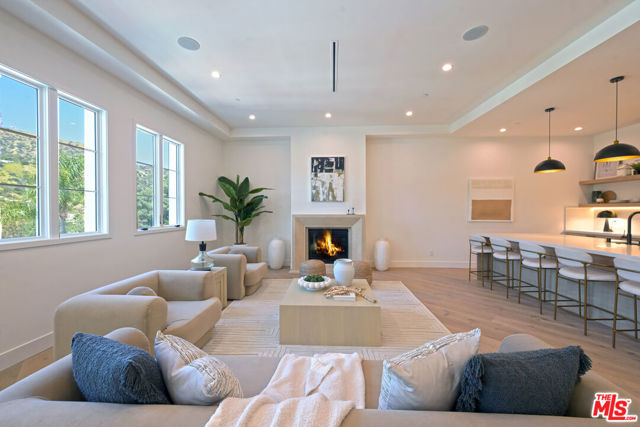 Sited on a promontory with commanding views of the Hollywood sign, Beachwood Canyon and the city below, this just completed extraordinary new construction presents as a classic Hollywoodland villa, blending seamlessly into this historic neighborhood, but reveals astonishing open, expansive interiors with a warm, organic modernism, executed with exquisite taste and style that simply cannot be matched in any other Beachwood property. Flooded with natural light and with views from every room, the home offers contemporary elegance and luxurious details throughout. The oversized chef's kitchen with top-of-the-line appliances and huge island opens to a voluminous living room and dining room, built for grand entertaining and intimate gatherings alike. The spacious entry level family room offers a multitude of options. The luxurious primary suite enjoys canyon views on one side and swimming pool and city towers on the other. With four bedrooms and five and a half bathrooms, multiple patios and terraces, a sparkling new pool and endless views, this iconic offering can never again be replicated. Elevated from the street and with Griffith Park behind, this unique trophy property affords the ultimate in seclusion and privacy. Superbly located near to Beachwood Cafe & Market, Griffith Park and Franklin Village, with commuter friendly access to major hubs of commerce and entertainment.