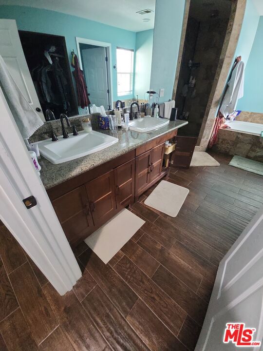 This beautifully maintained Twentynine Palms home is conveniently located near downtown and the Marine Corps base, making it an ideal choice for a military or deployed family. Over the past several years, Twentynine Palms has experienced exciting growth, welcoming new restaurants, a vibrant farmers market, and charming downtown shops and boutiques. The home features a spacious primary suite complete with dual sinks, a large walk-in closet, and an additional dedicated shoe closet. The spa-inspired bathroom includes a tile shower with triple shower heads, a heated jacuzzi soaking tub, and a cozy gas fireplace for added comfort. The kitchen offers generous storage and functionality, including a pantry, linen closet, and a custom wet bar with a fridge perfect for entertaining. Designed for efficiency and comfort, the home includes dual heating and cooling systems, dual-pane windows with custom coverings, dual hot water heaters, two septic tanks, and 50-amp RV hookups. Step into the backyard and you'll feel transported from the desert into your own private space, Additional concrete parking for RV. The fully fenced yard features a large covered patio with a gazebo, a rock fire pit, and a play set complete with swings, rock wall, and slide. A long driveway provides ample space for vehicles, recreational toys, or a safe area for kids to ride bikes and play. Just off the house, you'll also find an additional covered patio with a built-in BBQ, sink, refrigerator, and counter space ideal for outdoor entertaining year-round.