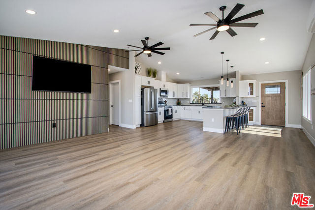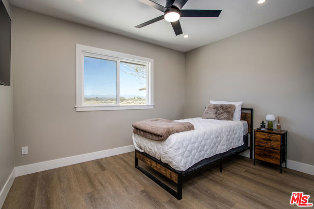 Discover the beauty and tranquility of desert living in Landers. This beautifully remodeled 3-bedroom, 2-bath home welcomes you with a bright, open-concept kitchen and living area perfect for entertaining guests or enjoying peaceful evenings at home. Nearly everything has been upgraded or replaced, making the home feel practically brand new. Improvements include an upgraded septic system, a new electrical panel, and concrete walkways surrounding the home so you'll never have to step in the dirt. High-end vinyl flooring flows throughout the home, complementing a stylish, thoughtfully designed kitchen that is both impressive and functional for everyday living. Step outside and take in the peaceful desert setting with charming views of the surrounding mountains. Situated on the fully fenced 2.5 acres, the property offers exceptional privacy along with plenty of room to expand, garden, create outdoor living spaces, or bring your future projects to life. The garage a full 1200 square foot space is divided into two separate sections, providing flexible space for parking, storage, a workshop, or hobby area. As night falls, experience one of the high desert's greatest treasures the famous dark skies of Landers. Here, breathtaking star-filled nights create a serene escape that feels worlds away from the city while still being within reach of nearby desert communities such as Joshua Tree and Yucca Valley. Ac and Heat systems are 3 ton mini splits.