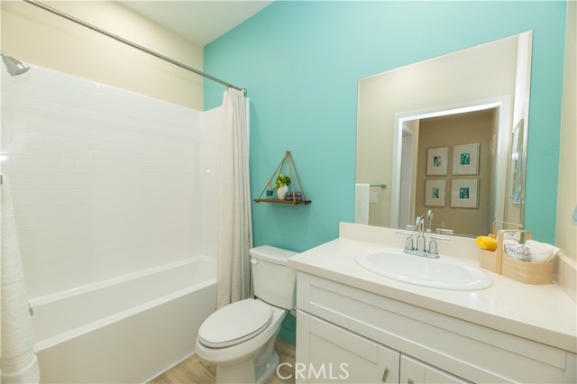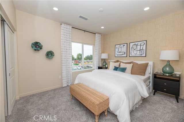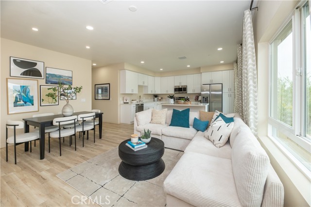 Brand-new construction condominium located in the Cherry Village community. This two-story home offers 3 bedrooms and 2.5 bathrooms, including a convenient downstairs bedroom with a private living area and kitchenette. The open-concept floor plan features a spacious great room and a large kitchen island, ideal for everyday living and entertaining. Interior highlights include quartz countertops throughout, luxury vinyl plank flooring in main living areas, and zebra blinds on all windows. A full suite of Samsung electric appliances—including refrigerator, washer, dryer, dishwasher, stove, and microwave—is included. Enjoy a private backyard patio and a 2-car attached garage. Energy-efficient with owned solar included. Conveniently located near major freeways, shopping, and dining.
