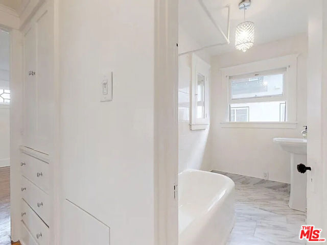 This lovely 2 bedroom, 1 bathroom upstairs unit is an architectural gem situated on a quiet, tree-lined street in the heart of West Hollywood. Offering privacy and a true standalone-home feel, this unit sits above the 4 car garage and does not share any walls with neighbors. Inside, you'll find updated appliances, newly refinished hardwood floors, and custom built-ins that have uplifted its historical character and charm. The living area consists of a cozy fireplace, built in shelving and tall windows throughout, allowing ample natural light to stream in. In addition to the open floor plan living and dining room, the kitchen has a perfect area to house a breakfast nook. The unit is equipped with central heating and multiple newly replaced AC units. This unit can also be leased with a reserved parking space. Plenty of street parking. This unbeatable location has a Walk Score of 91 out of 100, putting you within a block of amenities, restaurants and shopping. Most errands can be accomplished on foot, with Gelson's and Earthbar a block away. Nearby parks include William S. Hart Park, West Hollywood Park and Rosewood Park. Within close proximity to historical hotspots like The Comedy Store, Whiskey A Go-Go, The Troubadour, and more, it's also located near grocery stores, shops, parks and the best restaurants in town.