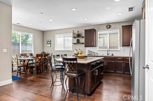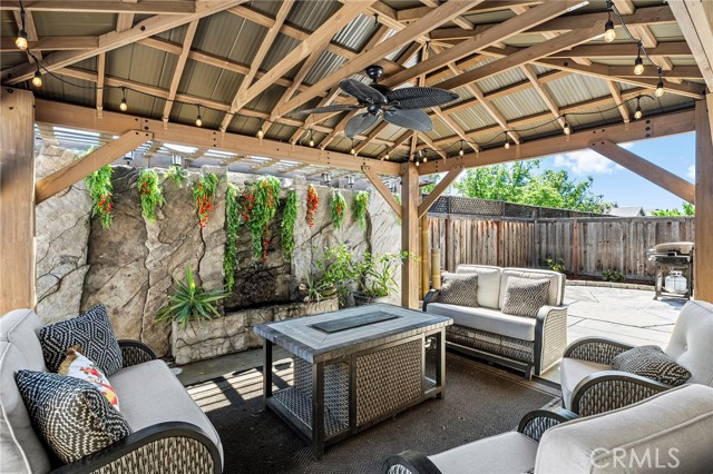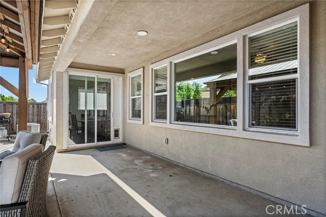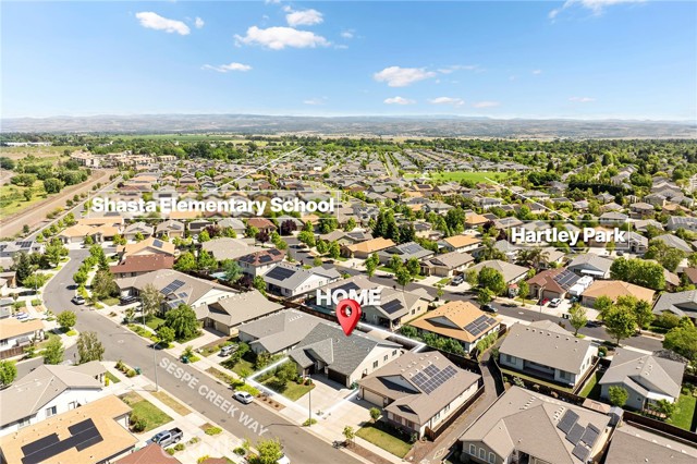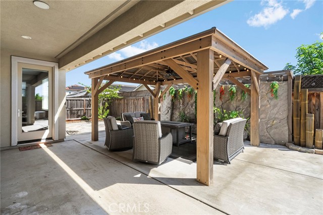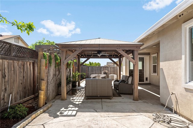 Welcome to this stunning single-story home nestled in the sought-after Meadowbrook Ranch neighborhood of North Chico. Built in 2017, this meticulously maintained 4-bedroom, 3-bathroom home offers 2,096 square feet of thoughtfully designed living space with a layout that just flows. Inside you'll find an open concept kitchen and living area perfect for everyday living and entertaining, complete with a 6-burner gas cooktop, stainless appliances, granite counters, a breakfast bar, and rich hardwood-style flooring throughout. The primary suite is tucked away from the secondary bedrooms and features a spacious walk-in closet and private en suite bath. Three additional bedrooms are generously sized, and the dedicated laundry room adds everyday convenience. Step outside and prepare to be wowed. The backyard is a true retreat featuring a stunning custom fountain with lighting and water features, a fully covered gazebo draped in bistro lights, and a patio built for those warm Chico evenings. Whether you're hosting or just unwinding, this outdoor space delivers. Three-car garage, central heat and air, and located near parks and top-rated Chico Unified schools. This one is truly move-in ready.