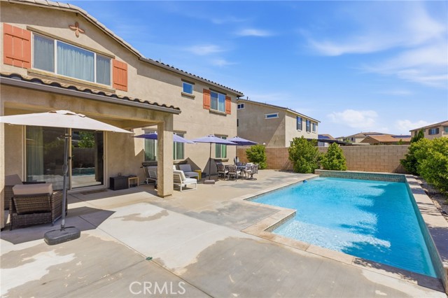 Turn-key North Fontana pool home offering 4 bedrooms, 3 bathrooms, and a highly desirable open-concept floor plan, ideally situated on a cul-de-sac with no HOA. This spacious two-story residence features a downstairs bedroom and full bathroom, ideal for guests, multigenerational living, or a private home office. An additional downstairs office/study provides even more flexibility for today’s lifestyle needs.The inviting great room showcases a large kitchen island, dining area, and beautifully appointed kitchen with quartz countertops and upgraded stainless steel appliances—all seamlessly opening to a generous family room, creating the perfect space for both everyday living and entertaining.Upstairs, you’ll find a versatile bonus room ideal for a game room or media space, along with an additional loft area that offers a potential 5th bedroom option. The spacious primary suite features a large walk-in closet, dual sinks, and a walk-in shower. Two additional secondary bedrooms, an upstairs hall bathroom with dual sinks, and a convenient upstairs laundry room with sink complete the upper level. Additional highlights include recessed lighting, dual-zone A/C for optimal comfort and drought tolerant landscape. Step outside to your private backyard retreat featuring a gorgeous pool and a covered patio—perfect for relaxing or entertaining year-round. Additional features include solar and an unbeatable location in desirable North Fontana, with convenient access to the 10, 15, and 210 freeways, and just minutes from shopping, dining, and entertainment at Victoria Gardens.