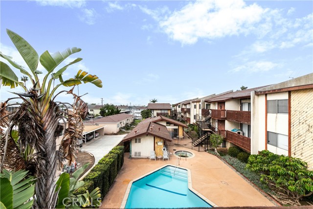 This updated second level 2 bedroom, 2 bathroom condominium offers approximately 1,045 square feet of comfortable living space within the Park Vista HOA community. The unit is move in ready and features stainless steel appliances. The living room and dining area share an open layout, creating a comfortable and functional living space. The kitchen offers a practical layout, and the unit includes a balcony. Both bedrooms are well sized. Additional features include central heating and two assigned parking spaces. The community is known for its quiet setting and offers amenities including a pool, spa, and recreation room. Conveniently located near Alondra Park, the South Bay Galleria, and local dining, with easy access to nearby freeways.