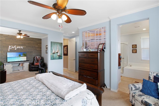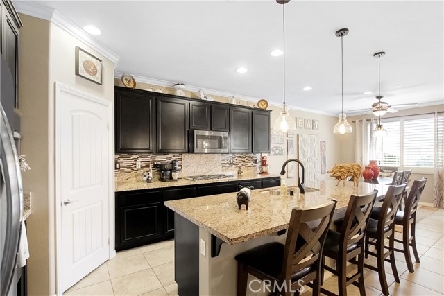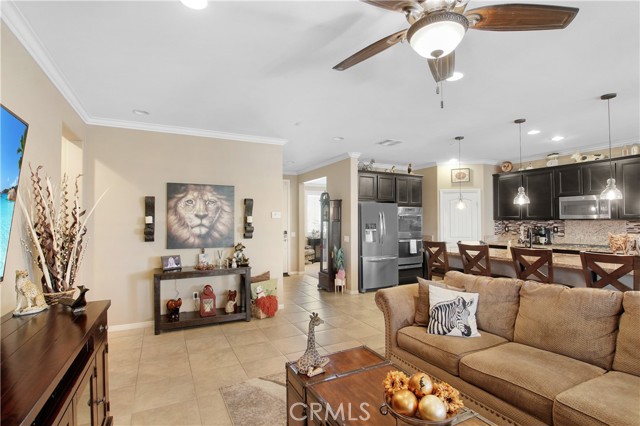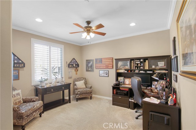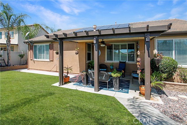 Beautifully upgraded and exceptionally well-maintained, this 3 bedroom, 2 bathroom, 2,032 SF single-story home offers spacious living with an office and a separate retreat. The open layout features quality finishes throughout, showcasing true pride of ownership. The kitchen, living, and dining areas flow seamlessly, creating an inviting space for everyday living and entertaining. The primary suite includes its own private retreat—perfect for a nursery, gym, or lounge—along with a well-appointed en-suite bathroom. Two additional bedrooms and the dedicated office provide flexibility for work, guests, or hobbies. The exterior is just as impressive, with beautifully landscaped front and back yards offering a peaceful, low-maintenance outdoor setting. Relax in the outdoor covered living area cooled by a ceiling fan. From curb appeal to interior upgrades, this home delivers comfort, style, and move-in-ready convenience.