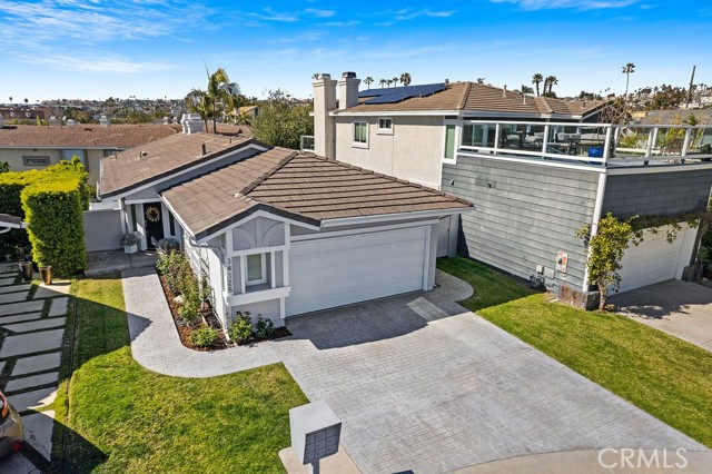 Discover an exceptional opportunity to own this beautifully remodeled, low-maintenance home that truly shines on a quiet cul de sac in the Lantern District. Designed with a bright, open layout, the main level features soaring vaulted ceilings, while the lower level offers impressively tall ceilings that enhance the spacious feel throughout. The main level showcases hardwood flooring, with plush carpet downstairs and upgraded baseboards throughout. Custom wood-trimmed windows and fresh interior paint add warmth and elegance to every room. The thoughtfully redesigned kitchen is a true centerpiece, featuring custom cabinetry with pull-out shelves and drawers, quartz countertops, a marble backsplash, and a stunning tongue-and-groove wood ceiling. Enjoy stainless steel appliances, a built-in wine cooler, farm sink with heavy-duty disposal, pantry, broom closet, automatic trash cabinet, and custom LED lighting. The home offers both a casual dining area within the kitchen and a separate formal dining space just beyond. Relax in the inviting living room with a cozy gas fireplace and access to a spacious deck that welcomes refreshing ocean breezes—accessible from both the living room and kitchen. A versatile third bedroom on the main level and a recently reconfigured 1/2 bath to a full bath with shower allows for main floor living. The lower level features a luxurious primary suite complete with a large walk-in closet, custom dual vanity, jetted soaking tub, glass-enclosed shower, double-sided gas fireplace, and private patio with spa and now has an office area for work from home versatility. The second bedroom suite feels like its own private suite as well, offering a generous walk-in closet, garden tub, and glass shower. Additional highlights include a convenient indoor laundry room with utility sink and an attached two-car garage with direct home access. The stamped concrete driveway accommodates two additional vehicles. Ideally located near the harbor, beaches, downtown, and more, this stunning home blends comfort, style, and convenience in one exceptional package.