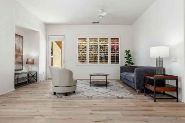 This beautifully maintained 2-bedroom, 2-bath home with an office/flex room is located on a quiet street in the desirable Heritage Palms community. The home is filled with abundant natural light, creating a bright and welcoming atmosphere throughout. Centrally positioned near La Quinta, it offers convenient access to world-class golf, dining, entertainment, and nearby casinos--truly one of the best locations in the desert.Heritage Palms is a premier 55+ resort-style community featuring an 18-hole championship golf course, indoor and outdoor pools, pickleball and tennis courts, a fully equipped fitness center, grill room, card and billiards rooms, and a wide variety of social clubs and activities.