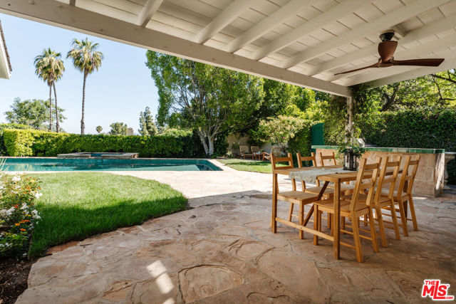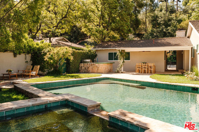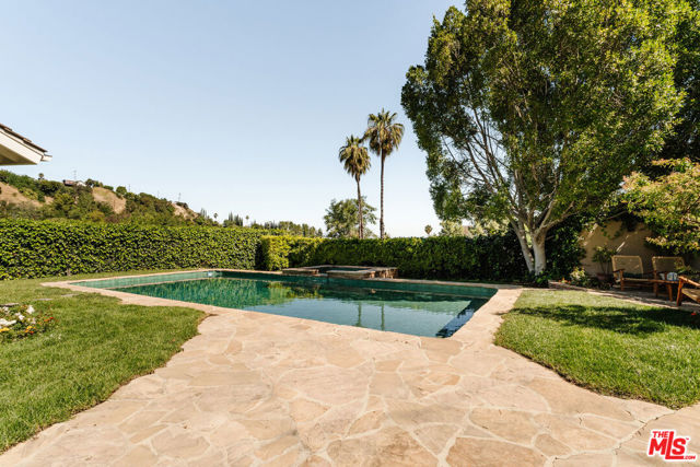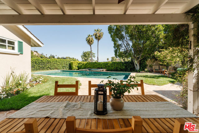 Recently remodeled and set high in the hills, this character-rich Encino residence sits on an expansive 18,639 sq ft lot, pairing elevated views with a pool and spa and offering a sense of privacy that feels removed while still just moments from Ventura Boulevard. Positioned beyond a long, tree-lined drive, the property unfolds through layers of mature landscaping, creating a sense of privacy that's increasingly hard to find.The approach is quiet and deliberate. Ivy climbs across the exterior, giving the home a sense of permanence, while an arched garden entry draws you inward. A brick pathway curves through greenery, revealing the home step by step. Inside, the living room is designed as the main gathering space, where exposed beams bring warmth overhead and the fireplace naturally centers the room. There's enough space to spread out, while still feeling connected, whether it's a quiet evening in or a full house of guests. Light moves through from multiple directions, keeping the space bright without sacrificing privacy, with views of greenery always in sight. The dining area sits just off the living room, positioned alongside French doors that open directly to the yard, making it easy to move between indoor meals and outdoor gatherings. The kitchen is anchored by a large peninsula that works as both prep space and a casual place to sit, with full-height cabinetry and integrated appliances keeping everything organized and within reach. The layout is efficient and practical, with a clear connection back to both the dining area and the outdoor spaces. A second living room offers a more relaxed, tucked-away setting, ideal for movie nights, reading, or a quieter place to unwind. Built-in shelving and cabinetry provide storage, while the fireplace adds a sense of comfort and separation from the main living areas. The bedrooms are arranged to give each space a sense of privacy from the main entertaining areas. One can easily function as a home office or creative space, while another works well for guests or shared living. Each room gets a comfortable amount of natural light and feels removed enough to serve as a retreat when needed. The bathrooms are designed for everyday use, with a mix of classic and updated finishes that feel straightforward and functional. The primary suite offers a calm, comfortable setting with enough space to settle in, paired with a bathroom that supports daily routines without excess. The backyard extends the living experience outdoors. A covered patio with a built-in ceiling fan creates a natural setting for dining or long afternoons outside, anchored by a barbecue and prep area. The pool and spa sit within a stone terrace, surrounded by mature landscaping that adds privacy and makes the space feel established. Multiple seating areas are spread throughout the yard, giving you options to gather, relax, or step away for a quieter moment. From the edges of the property, elevated views of treetops and distant hills come into view, reinforcing the sense of being tucked into the hillside. Located just moments from Ventura Boulevard, the home offers easy access to local favorites including Davenport's Restaurant, Larsen's Steakhouse, and Mora Italiano, along with coffee spots like Laidrey Coffee Roasters and Alfred Coffee, and everyday essentials at Whole Foods Market, Trader Joe's, and Gelson's Market.