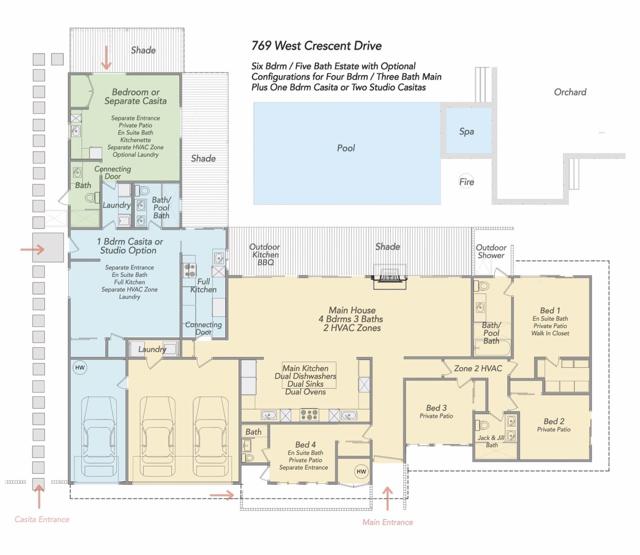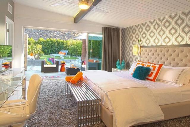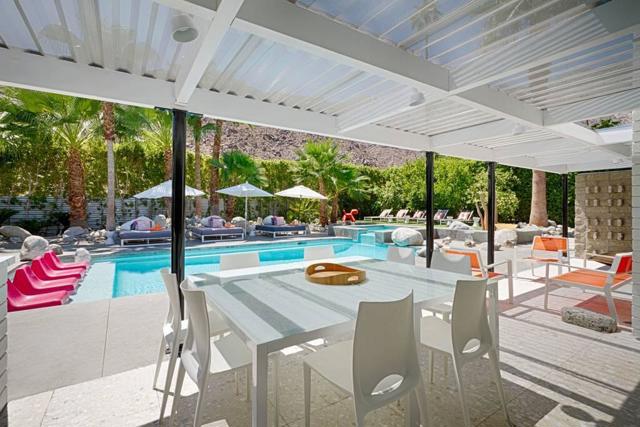 The Ultimate Multigenerational Compound and iconic Mid-Century Modern Alexander combined! Experience the timeless elegance of Palm Springs architecture in this iconic 1958 Mid-century modern Alexander Butterfly home, located in the prestigious Vista Las Palmas neighborhood. This meticulously modernized estate offers over 4,000 square feet of luxury indoor/outdoor living, distinguished by a rare and flexible layout featuring four bedrooms and three baths in the main residence plus the option of one or two independent casitas. This multi-structure design provides an unparalleled level of privacy and independence, supported by two full kitchens and an additional third kitchenette, making it the ultimate compound for hosting family and friends or for multi-generational living. Every inch of the gated and fully fenced grounds is designed for the sophisticated indoor-outdoor lifestyle Palm Springs is famous for. Stunning terrazzo flooring and curated art pieces create an awe-inspiring interior atmosphere, while wall-to-wall glass doors across the rear disappear to blend the interior with breathtaking mountain views. The exterior is a private resort unto itself, featuring two outdoor showers, firepit, newly resurfaced pool and spa, and outdoor heaters for year-round comfort. Sustainability meets luxury with an extensive green-energy suite, including an oversized solar panel system and solar hot water for the pool, complemented by a high-efficiency 400K BTU commercial natural gas heater to significantly reduce utility costs. Modern essentials are integrated throughout, from the 220-volt electric car charger and energy-saving smart thermostats, high-speed WiFi and security system. Offered fully furnished, the home includes a chef's kitchen with Viking high-end 6-burner gas range, wall oven/microwave, double width Fridge/freezer, three dishwashers, and more. Situated just a short walk from downtown Palm Canyon Blvd coffee shops, fine dining, and the O'Donnell Golf Course just blocks away. This is a rare opportunity to own a piece of history in the 'Beverly Hills of Palm Springs.' As of February 2026, a Palm Springs Vacation Rental Permit is available, making this a turn-key investment or a world-class private retreat.