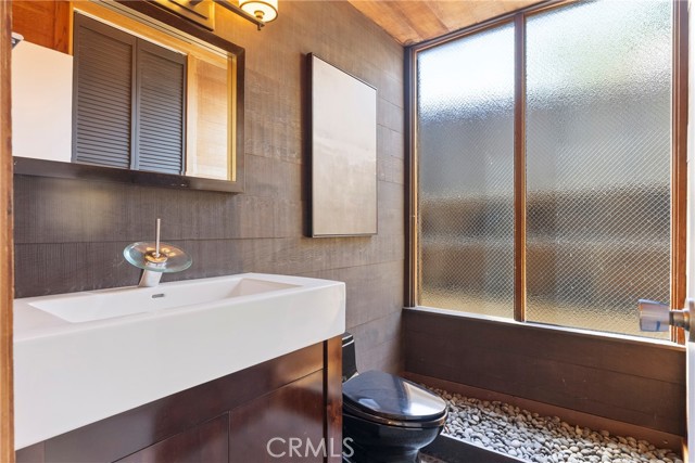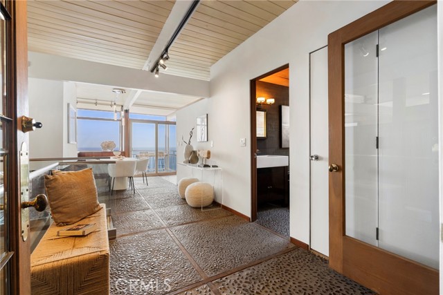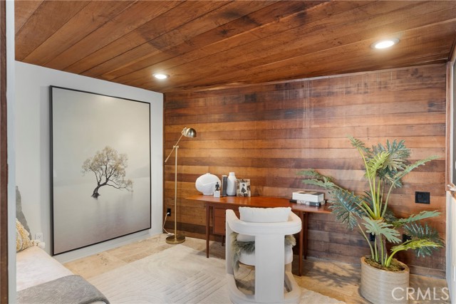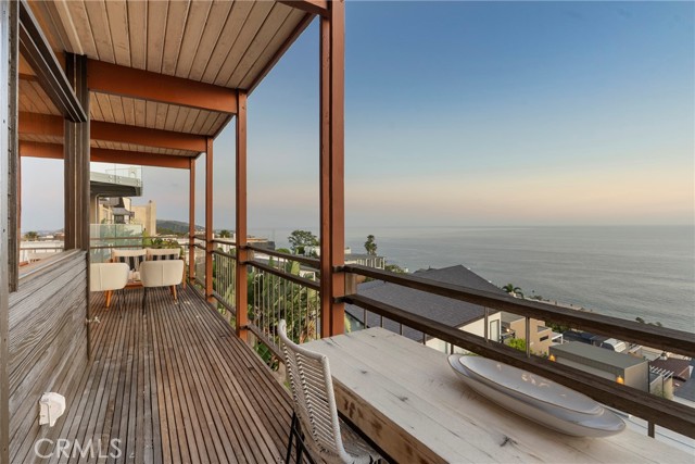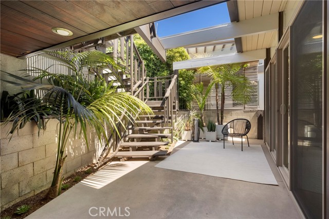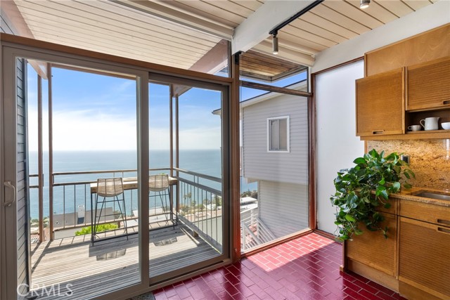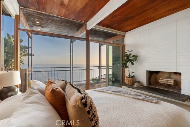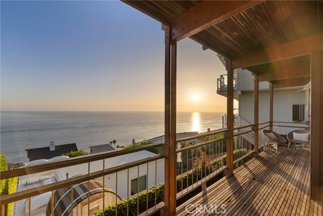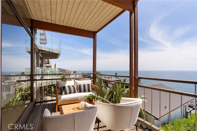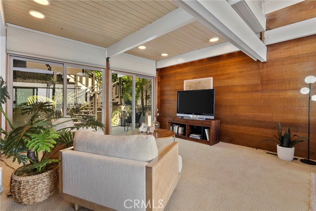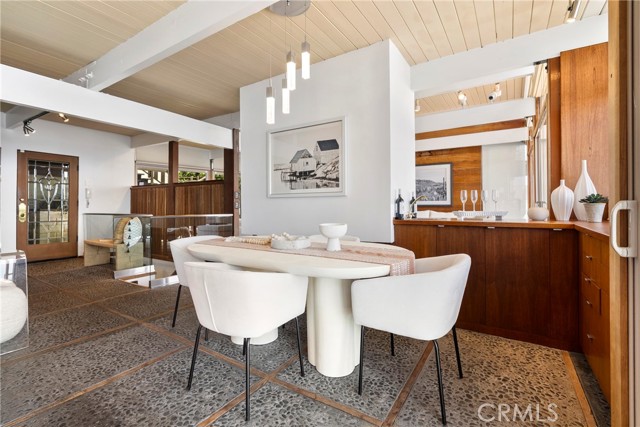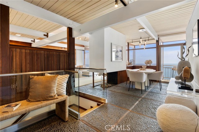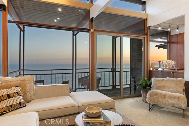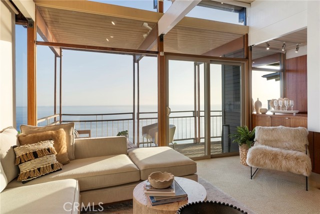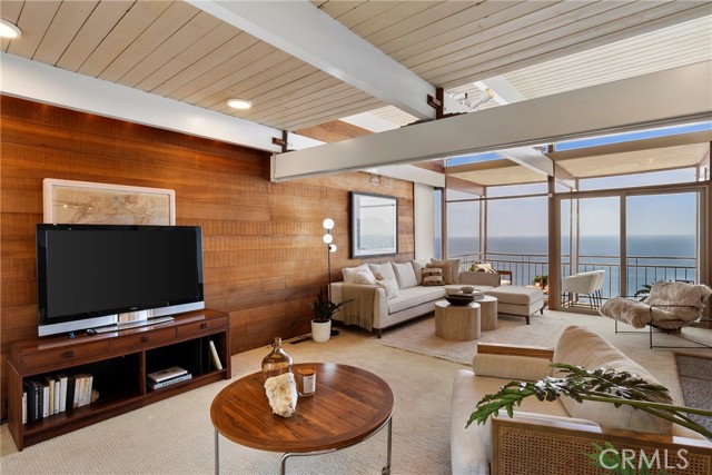 Perched high above the Pacific in the hills of Laguna Beach, this exceptional 1964 mid-century modern residence offers commanding panoramic views of the coastline and Catalina Island. A rare and beautifully preserved architectural offering, the home embodies the essence of classic mid-century design with its clean lines, expansive walls of glass, and rich use of old-growth redwood. Thoughtfully sited to harmonize with its natural surroundings, the residence reflects the principles of organic architecture and effortless coastal living. Sunlit interiors, soaring ceilings, and a seamless indoor-outdoor flow create an environment that is both architecturally significant and refined in its livability. The home features three bedrooms, two and one-half baths, along with a dedicated office. One bedroom is currently utilized as a fitness studio but could be utilized for an addtional home office, providing flexibility for modern living. Warm redwood paneling extends throughout much of the interior, complemented by custom built-in teak cabinetry in the dining area, creating a cohesive and sophisticated aesthetic. The main living room is defined by vaulted ceilings, exposed structural beams, and original redwood detailing, all set against a dramatic ocean backdrop with Catalina Island in the distance. Open-concept living spaces transition effortlessly to expansive glass walls and sliding doors, inviting natural light, ocean breezes, and striking sunset views into the home. Private living quarters offer tranquil retreats with a strong connection to the surrounding landscape. Outdoor spaces—including view decks and a secluded garden patio—appearing to extend the living experience, ideal for entertaining or quiet relaxation. Lush landscaping and mature palms, visible from nearly every room, provide a sense of privacy and serenity. A coveted southwest orientation captures optimal coastline vistas from the main level and two of the bedrooms. Located just moments from Laguna Beach’s renowned boutiques, art galleries, fine dining, stunning beach and scenic coastal trails, this prominent residence presents a rare opportunity to acquire an authentic mid-century modern masterpiece in one of Southern California’s most sought-after coastal enclaves. * Professional Photos Coming 4/21