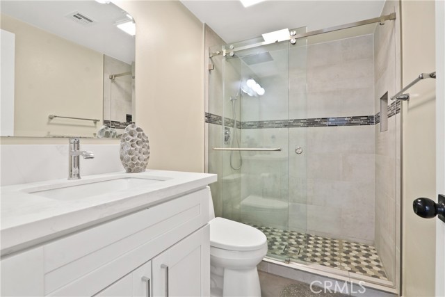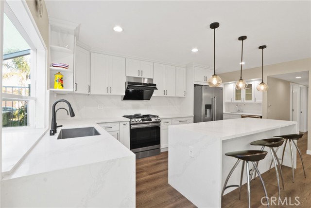 COMING SOON! Beautifully upgraded 5 bed, 3 bath home located in a desirable Cypress neighborhood. Truly a TURNKEY home. This spacious home features a grand living room with high ceilings and an open, functional layout ideal for everyday living and entertaining. Remodeled kitchen includes quartz countertops, white shaker cabinetry, prep sink station with glass-front display cabinets, beverage refrigerator, newer appliances, drawer microwave, a large island with seating for four, and a garden window. Main level offers 3 bedrooms, including the primary suite, and 1¾ bathrooms. Upstairs features 2 additional bedrooms, 1¾ bathroom, and a versatile oversized great room ideal for an office, media room, or play area. Backyard includes a shaded patio cover and planter area with a mature avocado tree—perfect for outdoor enjoyment. Major upgrades include: paid-off solar panels, newer roof (2023), newer electrical panel (2024), newer HVAC system and water heater, upgraded insulation, copper plumbing, remodeled kitchen and bathrooms, laminate flooring, dual-pane windows, and upgraded garage with epoxy flooring, recessed lighting, new door, and 220V dryer hookup with potential for EV charging. Recessed lighting through out, new plantation shutters in the living room, vaulted ceilings, direct access to fully finished 2 car attached garage with attic storage and pull down ladder. Nearby schools include Patton Elementary, Bell Intermediate, and Pacifica High School. Buyer to verify school assignments. Close to Navy Golf Course and Eucalyptus Park, with convenient access to shopping, dining, and the 405, 605, and 22 freeways.