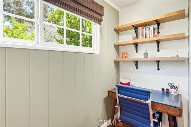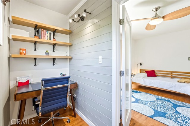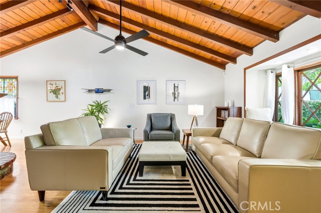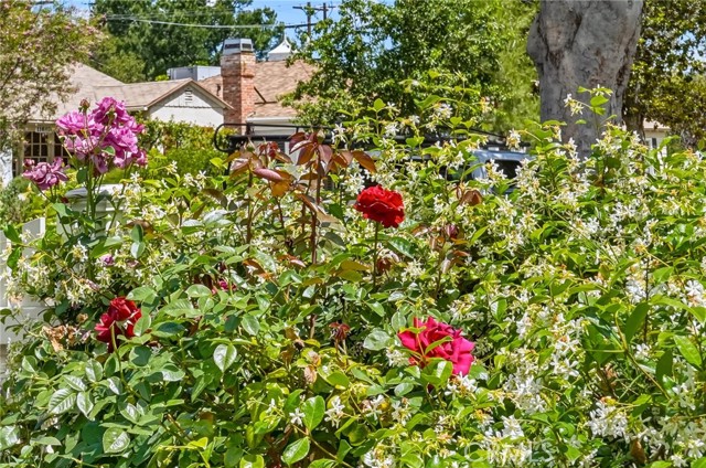 Charming mid-century hideaway in desirable Valley Village. This beautiful home, set back from the hustle and bustle of the world, welcomes you into a private, fenced front garden. Step into a living room with vaulted ceilings, fireplace, original wood floors, and a light-filled window seat overlooking a gardener’s paradise. A gorgeous, fully modernized kitchen, three bright and airy bedrooms, extra office space, and separate laundry room round out a meticulously maintained home. Throw open the French doors to experience seamless indoor-outdoor living from the living room to the large, private deck and lush backyard with flowering and fruiting trees, surrounded by ivy-covered walls. The finished, two-car garage boasts a tiled floor, air-conditioning, organization features, and overhead shelving. Located within walking distance to Colfax Charter Elementary, a National Blue Ribbon School, this neighborhood is known for being a family-friendly area where you often know your neighbors. Convenient location with high walkability, close to parks, shopping, and easy access to freeways and Metro Red Line. A true hidden gem in a highly sought-after location.
