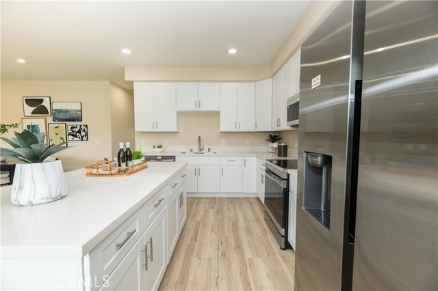 Brand-new construction condominium located in the Cherry Village community. This two-story home offers 3 bedrooms and 2.5 bathrooms, including a convenient downstairs bedroom with a private living area and kitchenette. The open-concept floor plan features a spacious great room and a large kitchen island, ideal for everyday living and entertaining. Interior highlights include quartz countertops throughout, luxury vinyl plank flooring in main living areas, and zebra blinds on all windows. A full suite of Samsung electric appliances—including refrigerator, washer, dryer, dishwasher, stove, and microwave—is included. Enjoy a private backyard patio and a 2-car attached garage. Energy-efficient with owned solar included. Conveniently located near major freeways, shopping, and dining. Move-in dates are subject to change.