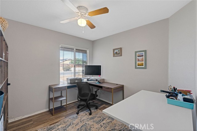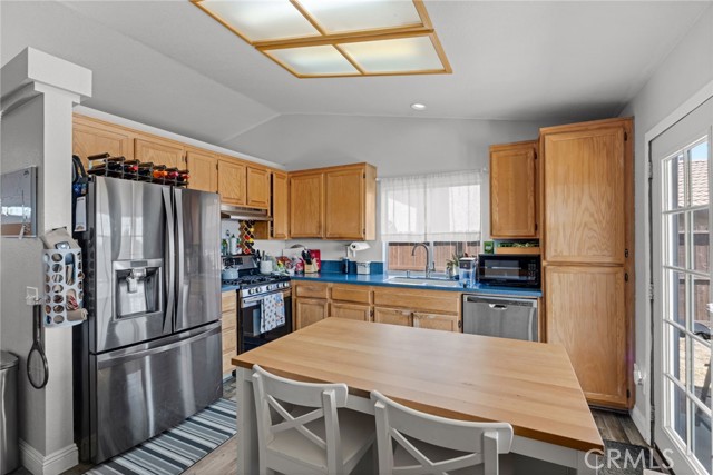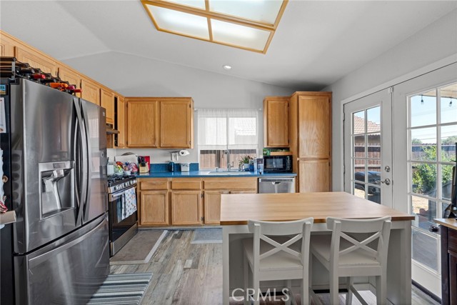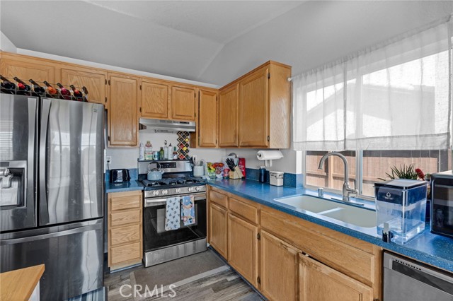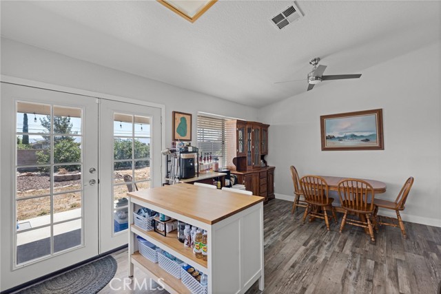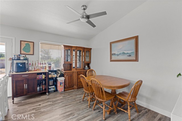 Welcome to 8441 Dove Creek Trail, a charming single-story home and an exceptional opportunity for buyers seeking a great home in Hesperia. Offering 1,161 square feet of comfortable living space, this well-designed floor plan features 3 bedrooms and 2 full bathrooms, blending functionality with everyday comfort. As you enter you will notice Fresh interior paint and newer flooring throughout create a bright, inviting atmosphere. The vaulted ceilings create a spacious living room that is centered around a cozy fireplace and is already equipped for a projector, making it the perfect space for relaxing or hosting movie nights. The kitchen opens seamlessly to the dining area and includes a large dog door with direct backyard access for your pets. The primary bedroom offers a private retreat to unwind at the end of the day. Additional highlights include a 2-car attached garage, extended driveway parking, and a 7,600 square foot lot with both front and private backyard space. Located in a quiet, established neighborhood of Hesperia with sidewalks and streetlights, this home offers a peaceful setting while remaining close to schools, parks, and everyday amenities. Don’t miss this incredible opportunity—8441 Dove Creek Trail could be your Next Home!