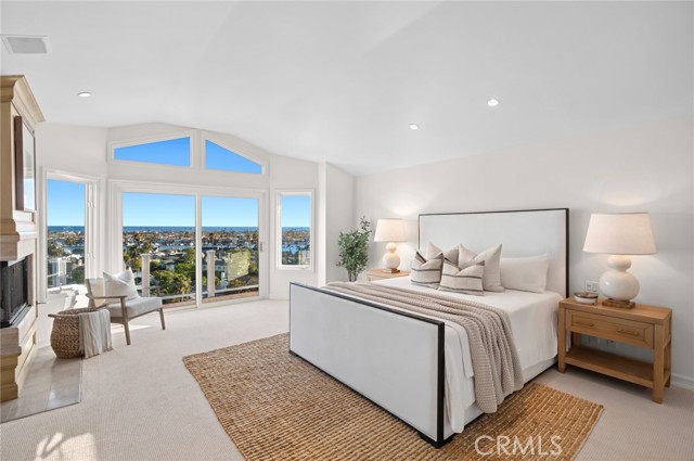 Commanding a premier lot adjacent to Cliff Haven and Newport Heights, 701 Kings Road offers sweeping down coast views of Newport Harbor, Lido Isle, the Pacific Ocean and beyond. Encompassing approximately 4,264 square feet of living space on an expansive 10,220 square foot lot, this three-level coastal residence is defined by its scale, privacy, and exceptional vantage point. The main living level is designed for both grand entertaining and everyday living, featuring soaring vaulted ceilings, exposed beams, and walls of glass that frame the panoramic coastline. Living and dining areas open seamlessly to an expansive view deck, creating a true indoor-outdoor experience set against a striking coastal backdrop. The kitchen is thoughtfully positioned, appointed with a large island, custom cabinetry, and a sunlit breakfast area — all oriented to capture the views. Occupying the entire upper level, the primary suite serves as a private retreat, complete with a fireplace, dramatic picture windows, and sweeping ocean and harbor vistas. A spacious en-suite bath and oversized walk-in closet further elevate the space. Two additional bedrooms are situated on the lower level, offering privacy and flexibility for guests, office space, or additional living. The grounds are equally compelling, featuring an expansive brick terrace with spa, multiple lounge areas, and a rare, usable lower yard with mature landscaping and a private putting green, an ideal balance of outdoor living and scenic outlook. An oversize 2 car garage with work area and an additional 1.5 car garage provide ample parking and storage. Ideally located in Newport Heights, the home offers easy access to 17th Street, Newport Harbor, and world-class beaches, combining panoramic views with a desirable interior along Kings Road, one of Newport Beach’s most coveted streets.