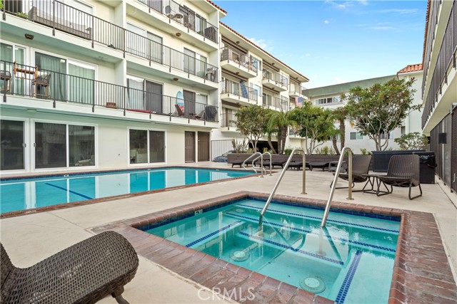 Welcome to this beautifully updated 2-bedroom, 2-bath residence, ideally positioned in one of Hermosa Beach’s most vibrant and sought-after locations. Blending modern comfort with effortless beachside living, this home offers the rare opportunity to own in a community where walkability, lifestyle, and long-term value converge. While there are 18 end-units in the building, only nine benefit from the added natural light and openness that come from not being adjacent to a neighboring structure—making this one of the most desirable and limited positions in the entire complex. With only a handful of condos selling in the building each year, the chance to secure one of these premium, light-filled units is exceptionally rare. Perfectly situated just steps from the scenic Greenbelt, moments from the sand, and a short stroll to Hermosa Pier and Pier Avenue, you’ll enjoy seamless access to top-rated restaurants, cafés, boutique shopping, and iconic local events. From beach days to nightlife, everything you love about Hermosa is right outside your door. The community itself is centered around a lush, landscaped courtyard, offering a peaceful retreat from the energy of the beach. Residents enjoy access to a heated pool and spa, open year-round, creating a relaxed and social coastal living environment. Inside, the home features a bright, open-concept layout with updated wood laminate flooring, quartz countertops, and a seamless indoor-outdoor flow to a private balcony with Greenbelt-facing views—perfect for morning coffee or unwinding in the ocean breeze. A standout feature rarely found in Hermosa Beach condos: this unit includes a recently installed ductless air conditioning system in the living room and both bedrooms. Most coastal buildings were not originally constructed with A/C, making this a highly valuable upgrade for year-round comfort. Additionally, the CC&Rs do not prohibit installation of in-unit laundry, offering flexibility that many beach condos simply do not provide. Completing the package are two side-by-side parking spaces with additional storage, a rare and highly convenient amenity in this area. Clean, move-in ready, and ideally located, this home presents a unique opportunity for first-time buyers, investors, or anyone seeking a refined beachside retreat. With its rare positioning, thoughtful upgrades, and unbeatable walkability, this is one of the most compelling condo offerings currently available in Hermosa Beach.