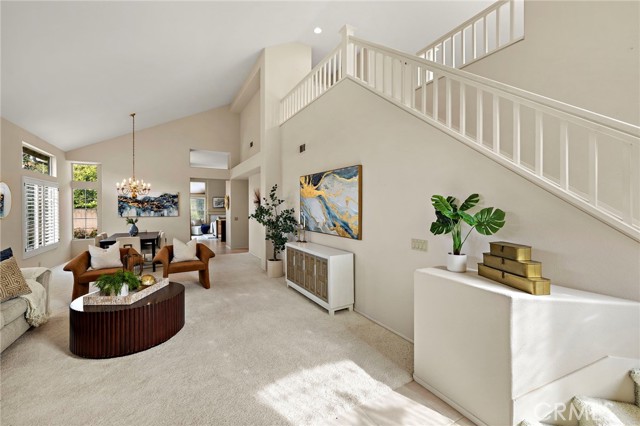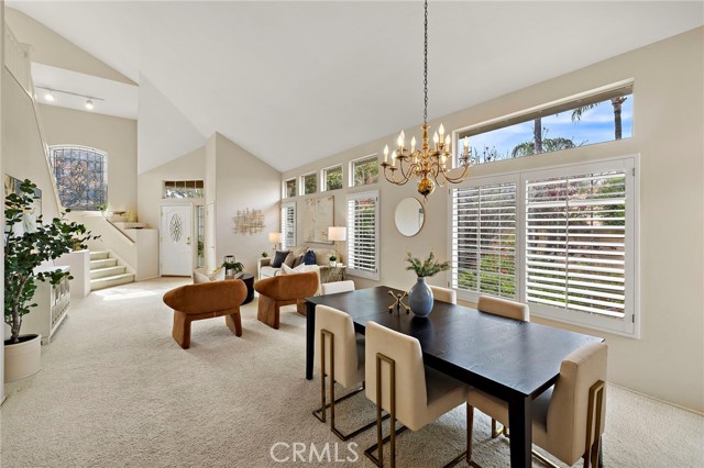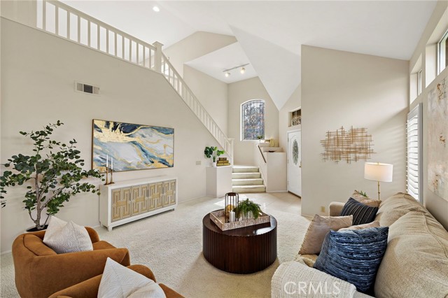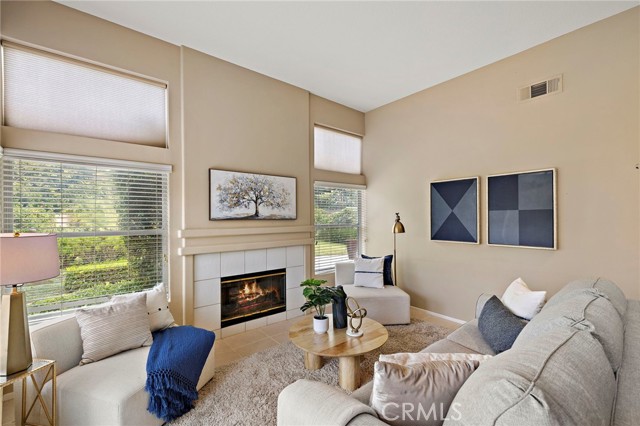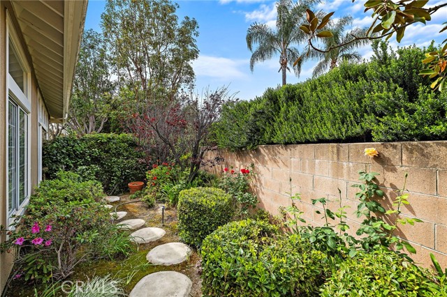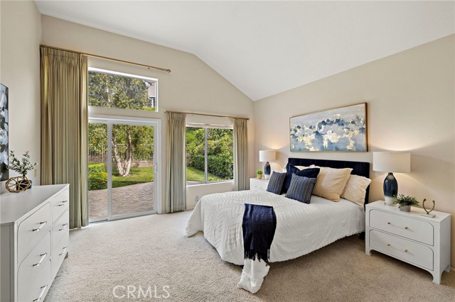 Located in the highly desired 55+ GATED community of Palmia Terraces. This beautiful home sits on a rare corner lot in a culdesac, has both front yard and back yard with a garden. 2 bedroom + loft and 3 bathrooms. Front doors open to high cathedral ceilings leading to the large common room and dining area surrounded with windows bringing in spectacular natural light. Up the winding stairs is the loft area/den or optional 3rd bedroom, as well as the 2nd guest bedroom and guest bathroom with tub/shower combo. Downstairs is the kitchen with granite countertops, custom cabinetry, plenty of storage, and another dining nook with built in cabinets/pantry. Kitchen is open to the living room which has sliding doors leading to the incredible back yard. Powder/Guest bathroom downstairs in hallway. Primary suite is on the main level down the hall from the kitchen and features high ceilings, two closets, windows in the bathroom, duel sinks, and sliding glass doors giving private access to the backyard. Separate laundry room downstairs with access to the two car garage. Garage also has additional room for storage. Must see is the LARGE backyard beautifully manicured with a gorgeous side garden. Home is repiped and down the street from the Palmia community center which offers recreational classes, sporting activities, gym, library, rec room, library, and so much more. *No open houses in Palmia, please call agent for a private showing