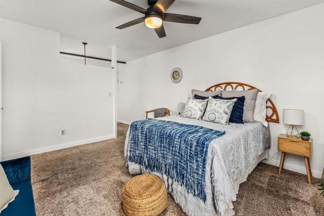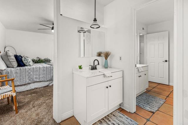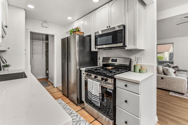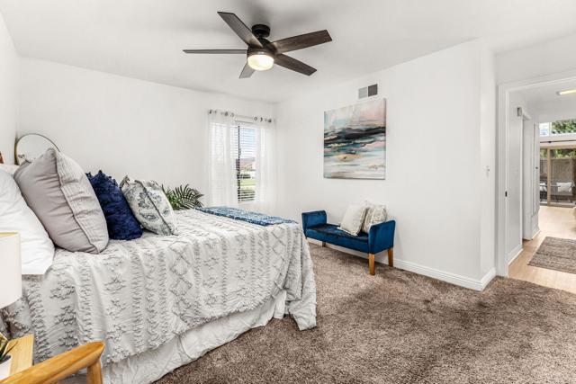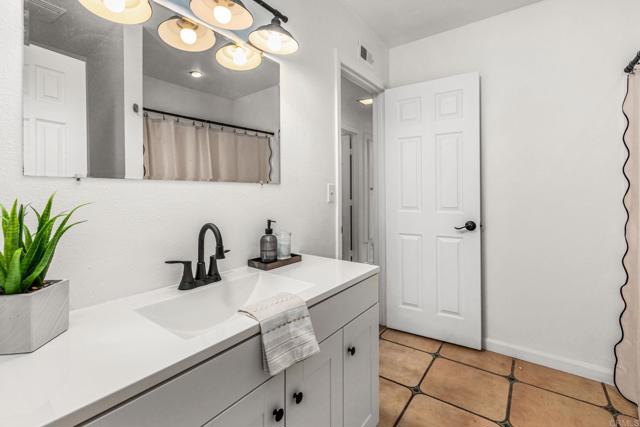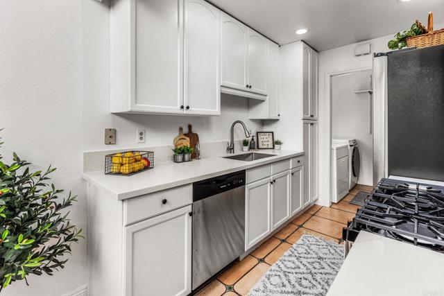 Welcome to this updated condo in the Orchard Lane community of Oceanside. This bright 2 bedroom, 1 bathroom home has great natural light and an open layout. The living and dining areas sit just off the kitchen, creating a comfortable space to gather and spend time. The kitchen and bathroom have been updated, and new flooring runs through the main living area and hallway. The kitchen and bath feature terracotta tile. Brand new appliances in kitchen. Just off the kitchen is a separate laundry room with in unit washer and dryer, which adds the convenience of not having to use community. A second sink area connects the primary bedroom and main bath, making getting ready easier. Both bedrooms are well sized, and the layout makes good use of the space. The fenced patio offers a private outdoor area to relax or gather with loved ones.The community has two pools and a spa, along with nearby parks. The home includes a detached one car garage and there is plenty of street parking for guests. HOA covers water and trash. Located in a great Oceanside spot with easy access to shopping, dining, and major routes, this home is clean and livable with room to make it your own. Come take a look.