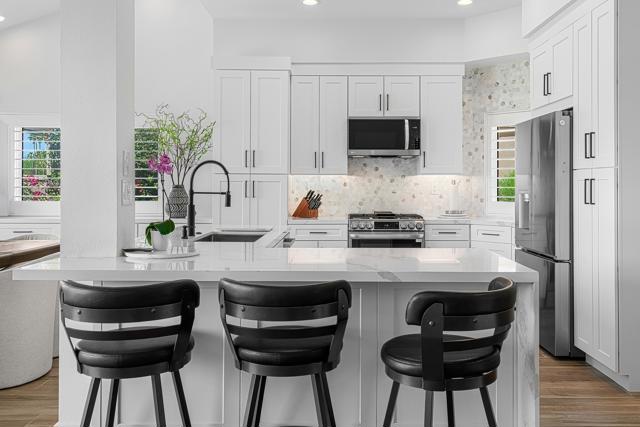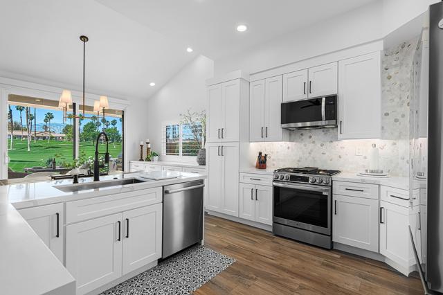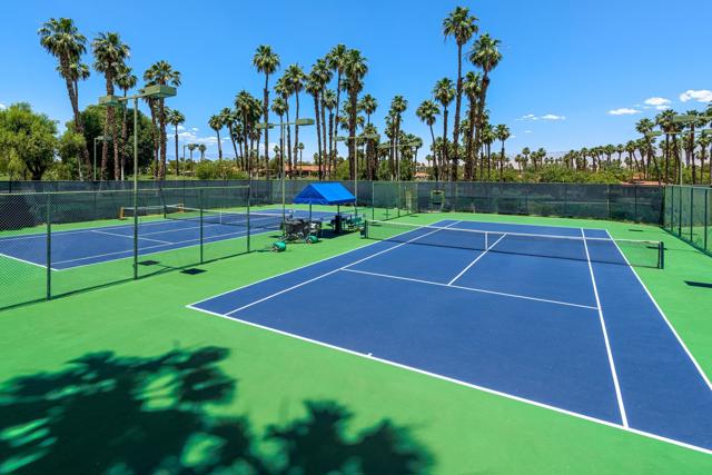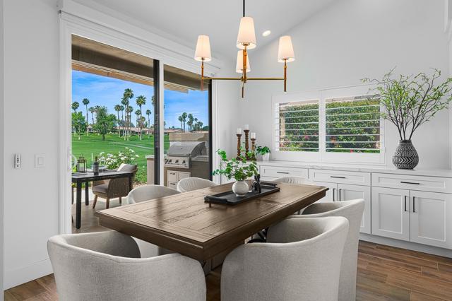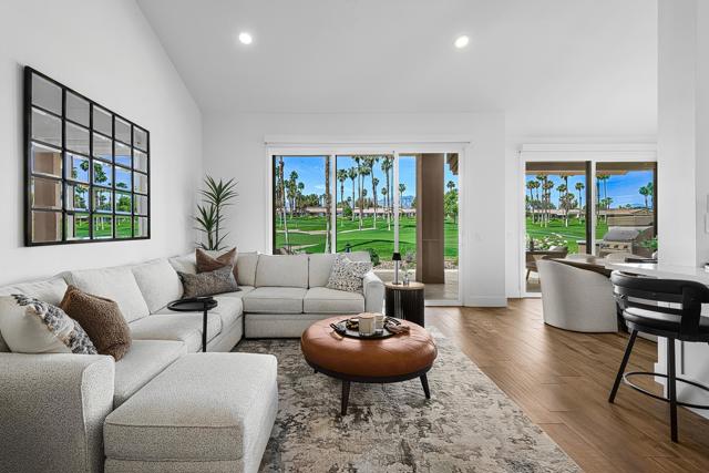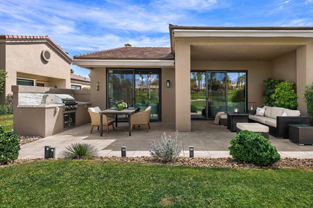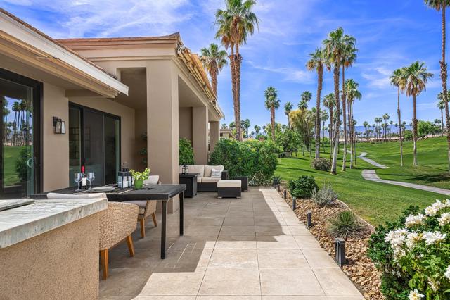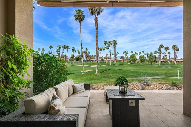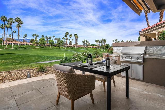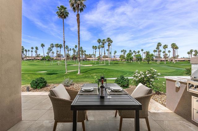 DON'T MISS THIS OPPORTUNITY!A truly rare offering where every detail has been thoughtfully curated for comfort, style, and effortless living. This beautifully remodeled three-bedroom, two-bath condo (1,627 SF) is offered turnkey furnished, making it immediately ready for your personal enjoyment.Ideally positioned in a prime location, the home captures panoramic mountain and double fairway views, creating a stunning backdrop for everyday living.Designed for seamless indoor-outdoor living, the Cottonwood floor plan features an open-concept layout filled with natural light. The chef's kitchen has been fully upgraded with custom cabinetry and a striking Quartz waterfall island, perfect for gathering and entertaining.Step outside to a generously sized tiled patio, where a newly constructed privacy wall with built-in BBQ, automated shades add both comfort and convenience, allowing you to enjoy the space year-round.Additional highlights include a two-car air-conditioned garage with epoxy flooring and an electric vehicle charger, blending practicality with modern convenience.Properties of this caliber rarely become available. Don't miss the opportunity to own a fully dialed-in desert retreat.Schedule your private showing today.