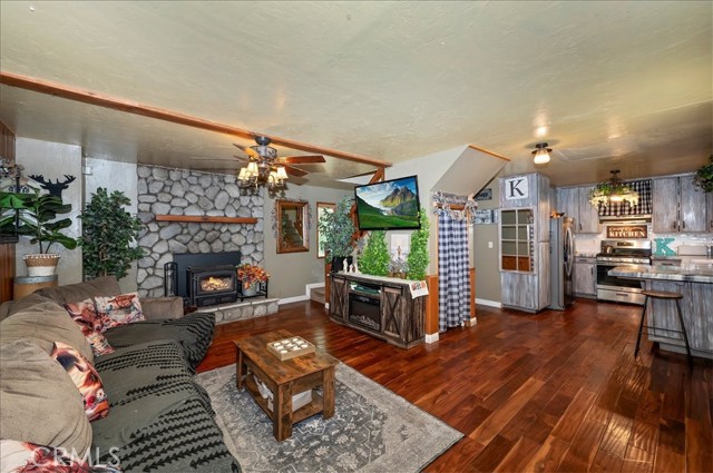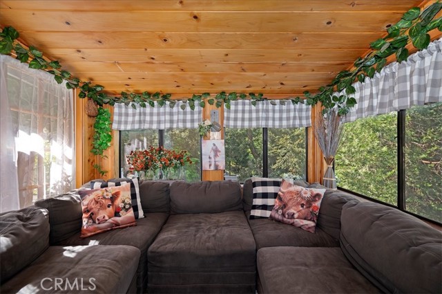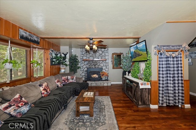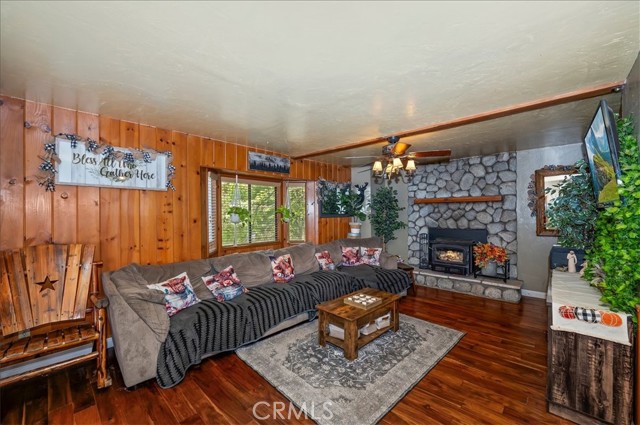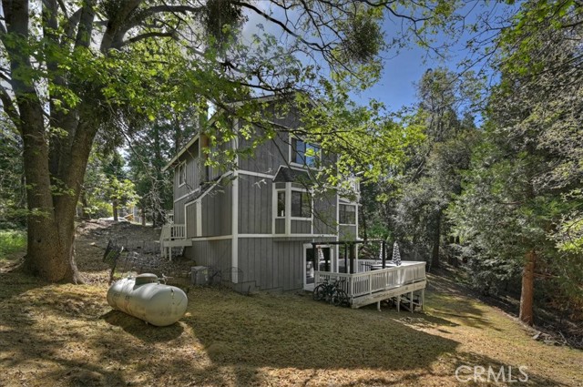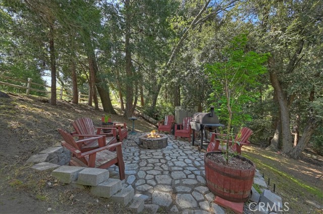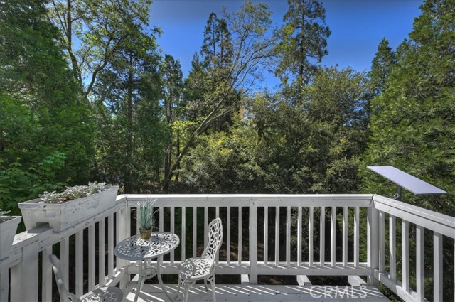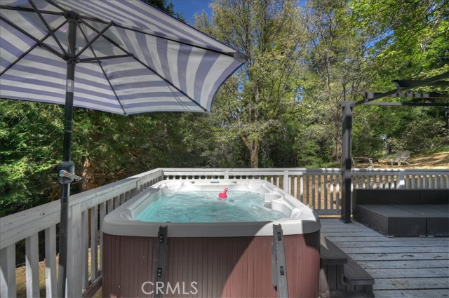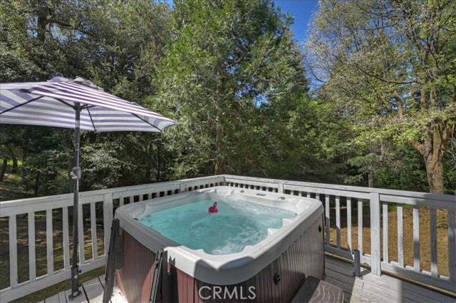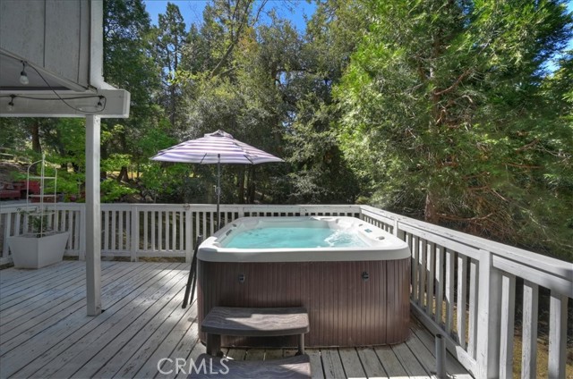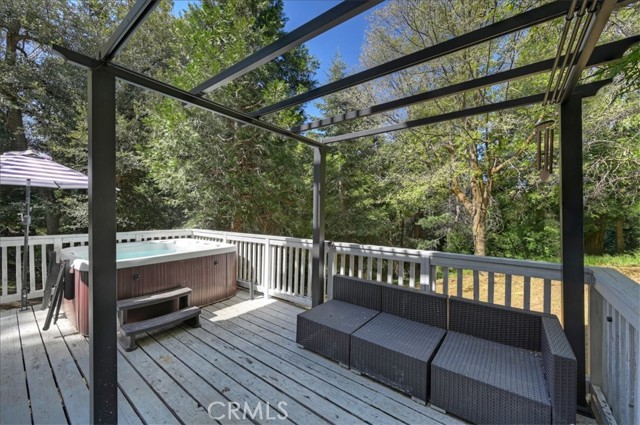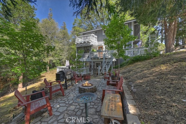 Escape to the secluded Cedarpines Park community, where peace and nature surround you at every turn. Nestled among serene natural surroundings, this level entry, charming 3 bedroom 2 bathroom home features a cozy wood-burning stove—perfect for crisp mountain evenings. Open concept living space featuring a light-filled sunroom perfect for a dining area or a cozy reading nook. Bathroom and laundry on main. All bedrooms on upper level with full bathroom. The primary bedroom features a private balcony that feels as if you're sitting in the tree tops. Step outside to enjoy a beautifully designed gas fire pit area, ideal for gathering under the stars, and unwind in the private outdoor jacuzzi surrounded by peaceful forest views. Bonus room just off the spacious deck-perfect for a man cave or game room. Truly sets the stage for outdoor living and entertaining. Plenty of major upgrades throughout, including a newer Roof (2022), Newer water heater, septic tank, and 20 Seer heat pump A/C system all in 2024. This property is a true haven for relaxation and getaway living, where tranquility meets comfort. Whether your seeking a full-time residence or a weekend getaway, this mountain retreat offers the perfect place to relax, recharge and reconnect with nature.