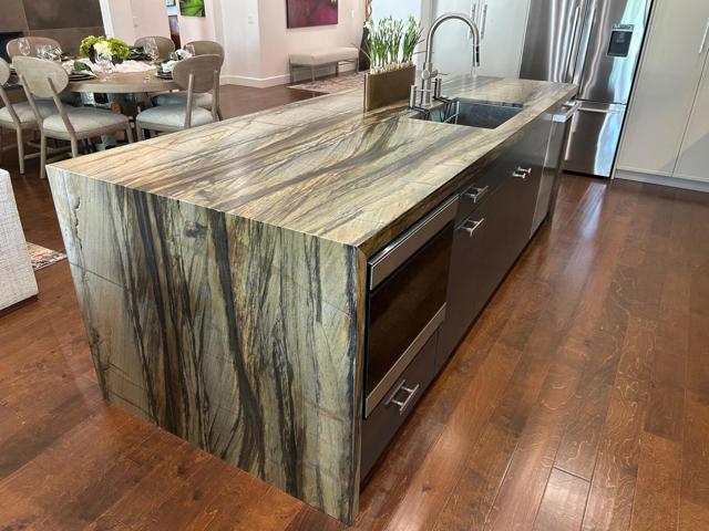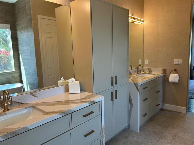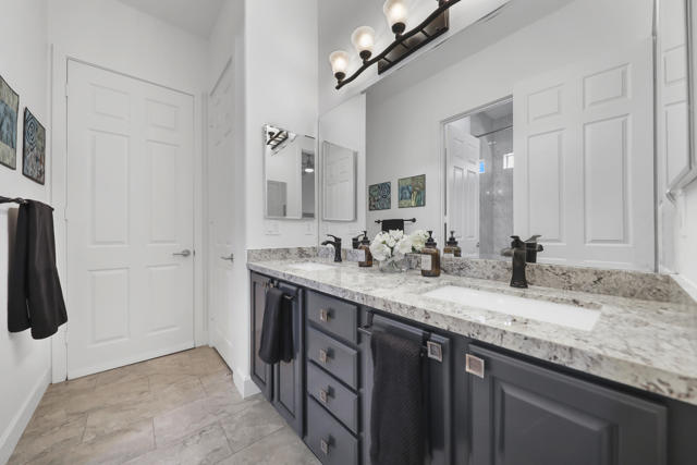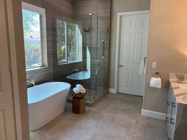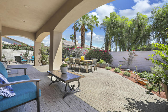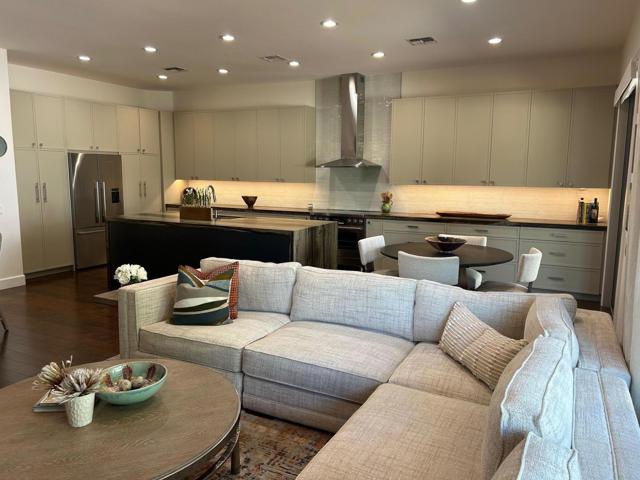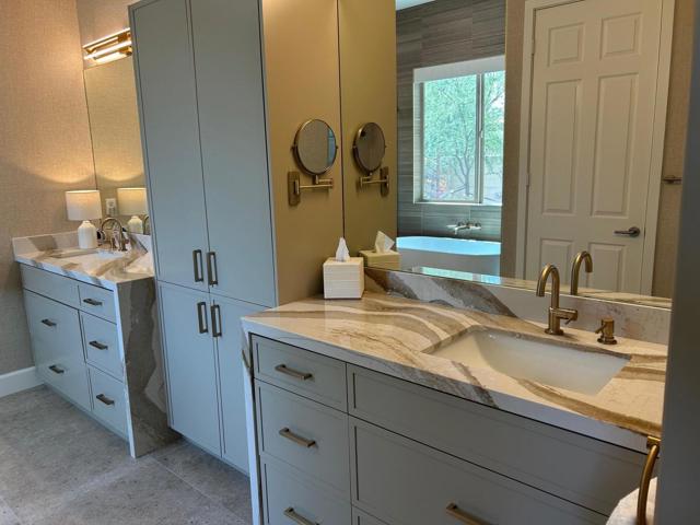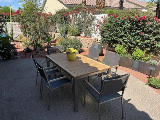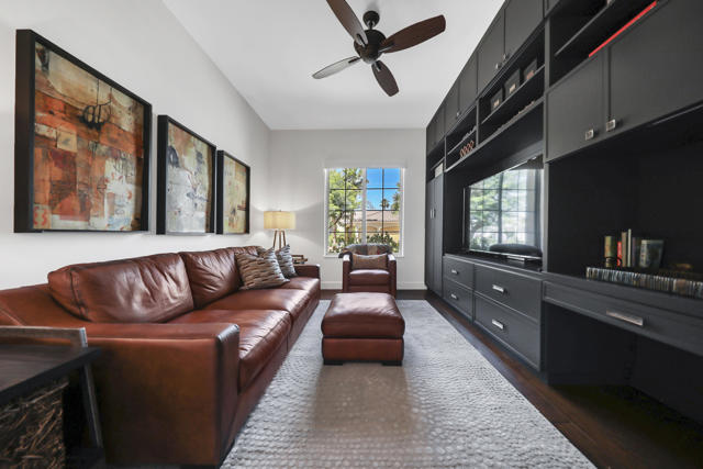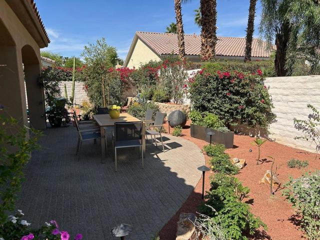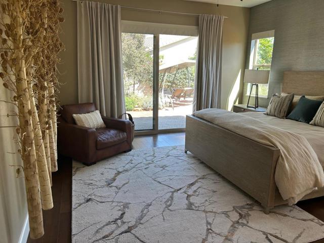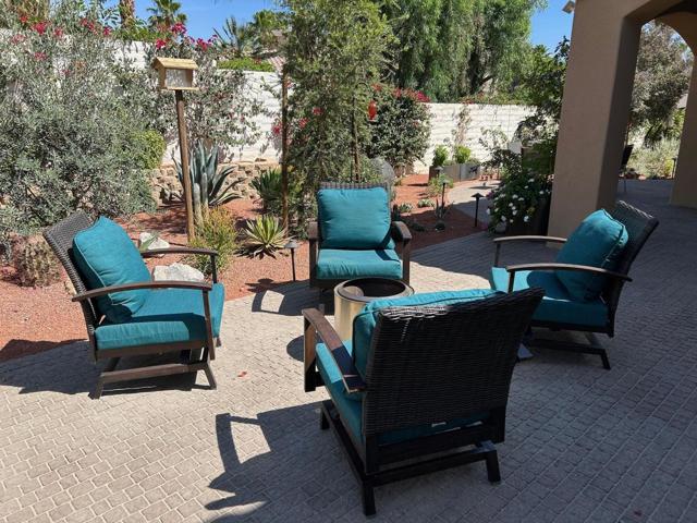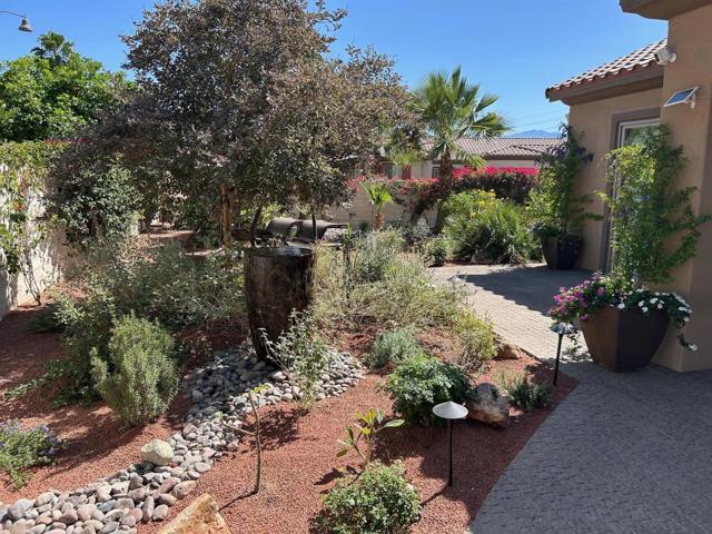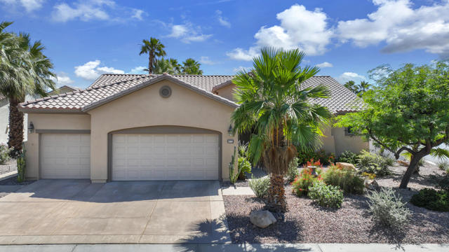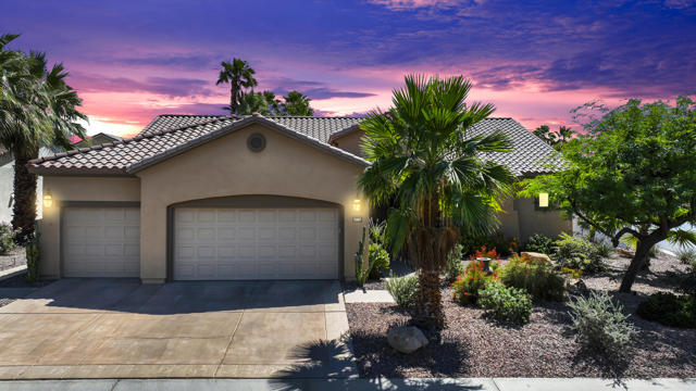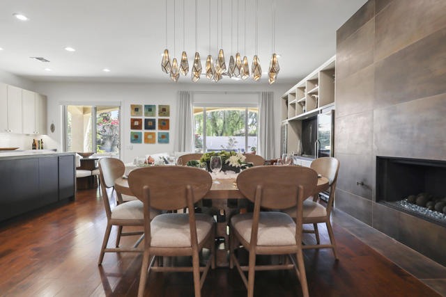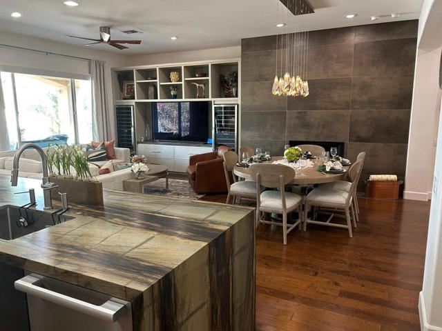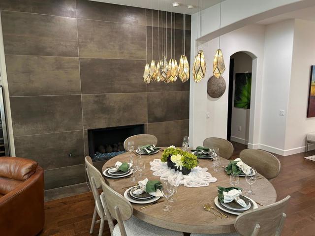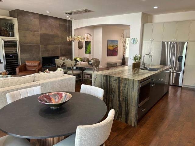 Architecturally reimagined and beautifully remodeled, this one-of-a-kind San Rafael plan offers 2,376 SF of refined living with 3 bedrooms, 2.5 baths, and a 3-car garage. Every detail reflects exceptional craftsmanship, blending modern design with warm, sophisticated finishes.The fully redesigned and expanded kitchen is a showpiece, featuring custom cabinetry with extra-wide and taller uppers, efficient drawer-style lowers, dual pantries flanking the refrigerator, and vertical storage above. Highlights include quartzite countertops with waterfall edges, a large island with stainless steel sink, built-in drawer microwave, hidden LED lighting, and premium appliances by Fisher & Paykel, Bosch, Miele, and Zephyr.The living room showcases custom built-ins with integrated storage and dual wine cabinets, complemented by motorized blinds, modern ceiling fan, and a stunning tiled fireplace wall. The reconfigured den offers a custom cabinetry wall, closet, and sliding barn door ideal as a private office or optional fourth bedroom.The primary suite is a true retreat with spa-inspired design, featuring a custom tile shower, separate his-and-her vanities with Cambria waterfall countertops, and expansive double-door storage. Additional upgrades include elegant Delta fixtures, a dedicated mini-split HVAC system, and custom motorized shades and drapery.Comfort and efficiency continue with a new HVAC system, digital wireless thermostat, upgraded electrical panel, and a climate-controlled garage with its own mini-split. Guest accommodations include new flooring and a remodeled bath.The backyard is a serene desert oasis, thoughtfully landscaped with lush plantings, trees, a fountain, and vibrant blooms. New pavers define multiple outdoor living spaces for dining, relaxing by the firepit, or enjoying breathtaking mountain views.This exceptional home truly stands apart--schedule your private showing today.