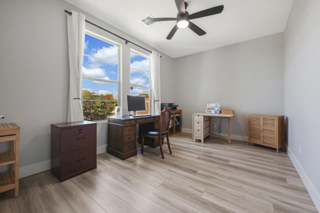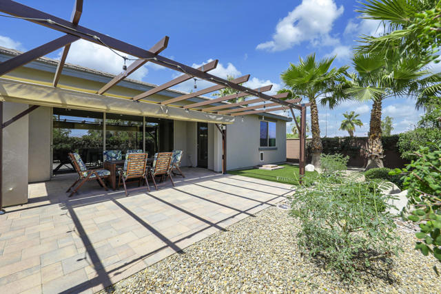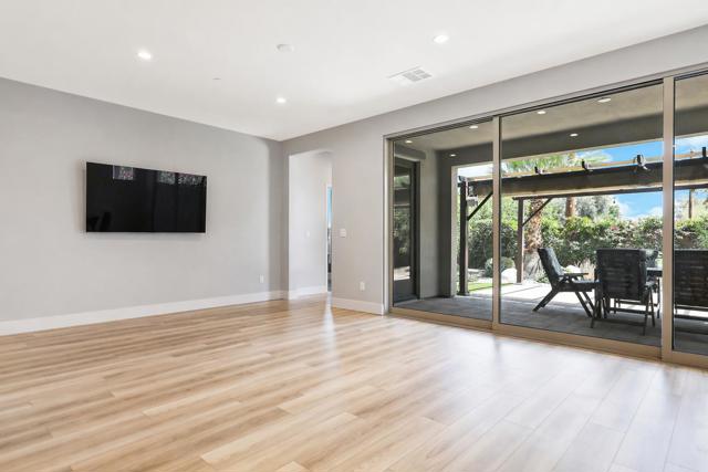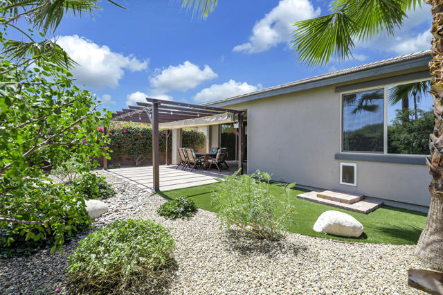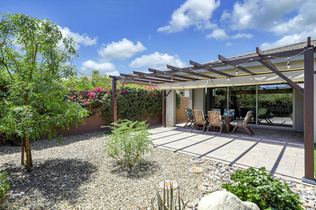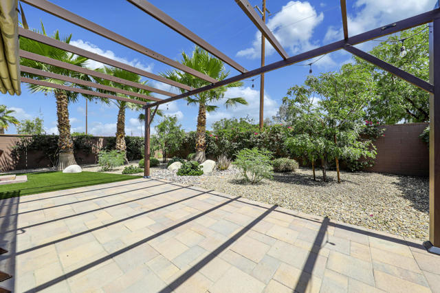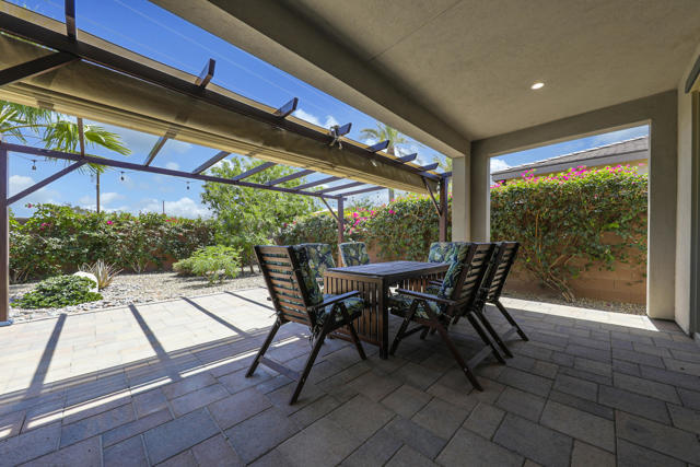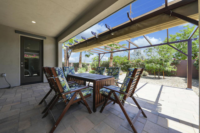 Highly desirable Affirm floor plan with an open-concept design, perfectly suited for both everyday living and entertaining. The beautifully appointed kitchen features quartz countertops, a custom backsplash, a large center island, and upgraded soft-close cabinetry throughout. Enjoy seamless indoor-outdoor living with a multi-sliding glass door that opens to a covered patio with an extended retractable awning, providing additional shade and comfort--ideal for relaxing or hosting. The backyard is thoughtfully finished with paver hardscaping, professionally designed mature landscaping, and low-maintenance artificial turf for year-round appeal. This flexible layout offers two bedrooms plus a spacious den, well-suited for a home office, media room, or guest space. Additional highlights include an energy-efficient tankless water heater and a stylish primary bathroom featuring dual vanity sinks, a framed mirror, a custom shower with bench seating, and a walk-in closet. Located within the sought-after 55+ section of Trilogy, this home offers a refined balance of comfort and resort-style living. An optional Polo Club membership provides access to the clubhouse, state-of-the-art fitness center, resort and lap pools, tennis and pickleball courts, an indoor golf simulator along with a full calendar of social offerings.