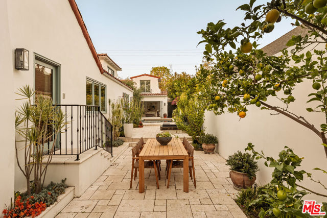Nestled in the coveted North of Montana neighborhood, this beautifully reimagined Contemporary Spanish residence blends timeless character with a fresh, refined aesthetic. Warm, light filled interiors define the open concept living spaces, where a thoughtfully designed kitchen, anchored by an expansive island ideal for casual dining and gathering, flows seamlessly into the family room and intimate dining area. The main residence offers 3 luminous bedrooms and 2.5 baths, all situated on a single level. A loft above the primary suite provides a peaceful, elevated retreat, ideal for a private office or reading lounge, complete with its own balcony. Outdoors, a sun-drenched setting unfolds with a hot tub and pool featuring swim-in-place jet technology, a built-in fire feature, and a dining terrace conveniently located just off the kitchen, creating effortless indoor-outdoor flow. A detached guest house adds exceptional versatility, well suited for guests, a private office, or a studio. Above the guest house, an additional upper-level bonus space offers flexibility for a gym, creative workspace, or other adaptive use. Ideally located just moments from Montana Avenue's boutiques, cafes, and dining, and in close proximity to Palisades Park and Santa Monica State Beach, this home offers effortless coastal living within one of Santa Monica's most sought-after neighborhoods and its acclaimed school district.