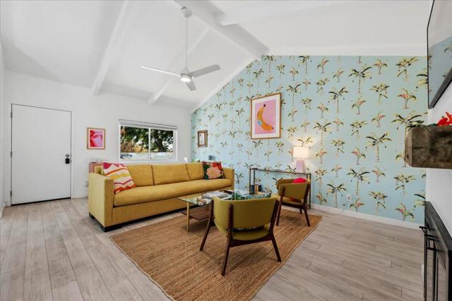 Stylish Desert Living in Sunshine Villas 🌴Arguably one of the best views in Palm Springs, this updated villa-style condo blends classic mid-century style with clean, modern upgrades. Enjoy breathtaking views of the Prescott Preserve right out your front windows, offering a sense of privacy and calm that's hard to find in a condo community. Inside, the home has been completely renovated from top to bottom. Walk in and you will immediately know that you are in Palm Springs with the fun wallpaper, and furnishings with a clear nod to the mid-century feel throughout. The condo features soaring vaulted ceiling in the living room, a fun updated kitchen, remodeled bathrooms, new windows and sliders, upgraded HVAC, sleek flooring, and more. The over-sized back patio creates a comfortable outdoor retreat with both shade and sun, with views toward one of the community pools and spas as well as the San Jacinto mountains -ideal for relaxed indoor-outdoor living. Located in a gated community of just 120 single-level homes - and just a few miles from all the fun of downtown Palm Springs - this property offers a quiet neighborhood feel within a wonderful community. Sold fully furnished, bring your tooth brush and call it home!Highlights:● Prime location facing open space & Prescott Preserve● Fully upgraded interior throughout● Extended patio with pool/spa views● One-car attached garage● Gated community with 4 pools & spas● Pickleball and tennis courts● Private dog park● Turnkey furnished● Single-level living**