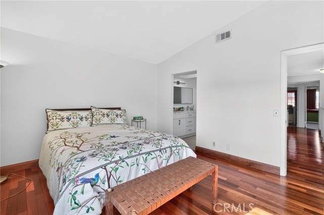 Welcome home to 5936 Middleton Street — a strikingly updated, move-in-ready residence that effortlessly blends refined interiors with an unbeatable location minutes from Downtown Los Angeles. Spanning 1,912 square feet across three bedrooms and three bathrooms, this thoughtfully designed home delivers the space, style, and functionality today's buyers are searching for. From the moment you step inside, soaring high ceilings and gleaming hardwood floors set a tone of elevated living. The expansive living and dining area is an entertainer's showpiece — flooded with natural light, anchored by a sleek wet bar, and opening through elegant French sliding doors to the outdoors. Whether hosting cocktail parties or cozy dinners, this layout handles it all with ease. The chef-inspired kitchen features gleaming granite countertops, abundant cabinetry, a stainless steel sink, and handsome tile flooring — all centered around a convenient breakfast bar perfect for morning coffee or casual meals. A secondary dining nook connects seamlessly to the kitchen and flows through French doors into your own private outdoor sanctuary, where mature fig, persimmon, and tangerine trees create a serene, resort-like escape right in your backyard. Practicality meets polish throughout — a convenient downstairs bath, an epoxied garage with washer/dryer hookups and built-in storage, dual-pane windows, and central air conditioning ensure year-round comfort and everyday functionality. Upstairs, the luxurious primary suite is a true retreat: dual mirrored closet doors, an impressive quartz double-vanity, a dedicated toilet room with extra cabinetry, and a beautiful skylight that bathes the space in natural light. The updated secondary bathroom echoes the same elevated aesthetic with soft-close cabinetry and its own skylight. Two additional generously sized bedrooms — both featuring charming bay windows — offer versatility for family, guests, or a home office. One includes a custom walk-in closet with built-in shelving; the other features mirrored sliding doors. Out front, an automatic driveway gate, paved walkway, and low-maintenance landscaping offer security and curb appeal with no hassle. Positioned for ultimate convenience — just minutes from the vibrant Arts District, world-class Downtown LA dining and culture, major shopping centers, freeway access, and public transit. This home offers a rare combination of quality, design, and location that puts everything within reach.