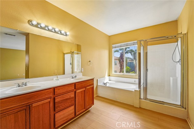 Situated in a highly convenient Eastvale neighborhood, this beautiful two-story home features a recently updated interior fresh paint and new flooring. The entrance opens to an inviting living room with vaulted ceilings and ample natural light, adjacent to a formal dining space. The open floor plan towards the back to unfold a spacious kitchen, features wood cabinetry, tile countertops, a pantry, and a center island, all in its original well-kept condition. Next to kitchen is a breakfast nook with a sliding glass door access to the backyard. It also connects to a family room anchored by a cozy fireplace. There is a master suite in main floor to accommodate overnight guests or multilgeneration lifestyle. Addition guest restroom is also aviable in main floor for convenience. Moving to upper level is fully carpeted with a spacious loft, along with three bedrooms, which includes a master suite and additional full bathrooms. There is also an extra space can be used as a play area or simply a meditation retreat. Additional property highlights including : an extra space / room at main floor can be used as home office or convert to a 5th bedroom, recessed lighting in kitchen, walk-in closet in upstairs master suite, laundry room upstairs for convenience, 3 car attached garage, low maintenance backyard with a built in BBQ grill set. No HOA. The property is located in the heart of Eastvale, providing immediate access to the 10, 15, 60, and 91 freeways. The location is near neighborhood parks, top-rated school. Agent please read private remarks.