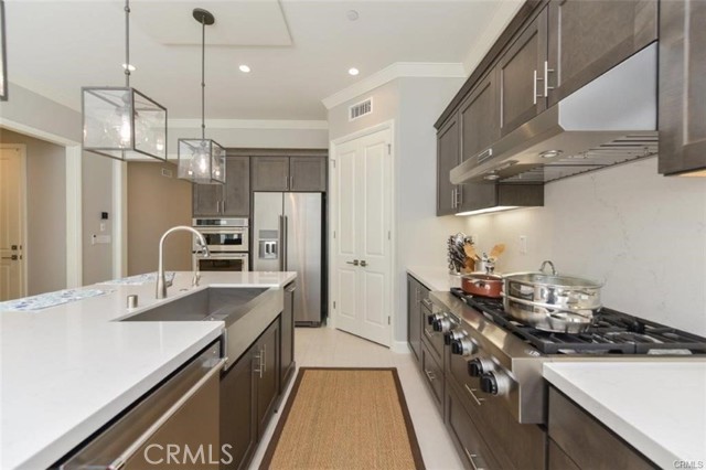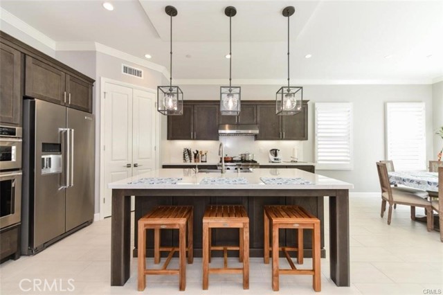 Located in the center of the most convenient of Eastwood, this gorgeous detached residence boasts a desirable private lot location. Fabulous floor plan features 4 bedrooms 3 1/2 full bathrooms, and a 2-car attached garage. The open layout makes a striking impression and the light-filled rooms. Expanded chef’s kitchen features extensive counter space and cabinetry, stainless appliances, and a large island with seating overlooking casual dining and a spacious great room. Splendid tile flooring covers most of the main floor and all wet areas and hardwood on the second floor. Relax and recharge in your luxurious master suite with a spa-like bathtub and separate shower. Generous-sized secondary bedrooms and convenient downstairs laundry offer comfortable living space for the entire family. Enjoy resort-style recreation and amenity-filled 2 established parks. Lap & wading pool, spa, half basketball court, tot lot, barbecues, and more. Shopping/dining are conveniently located near Woodbury Town Center, Irvine Spectrum, and Tustin Marketplace. Attending award-winning Irvine schools. Walking /Biking distance to top-ranked Eastwood Elementary School and Northwood High School. No Furniture is included