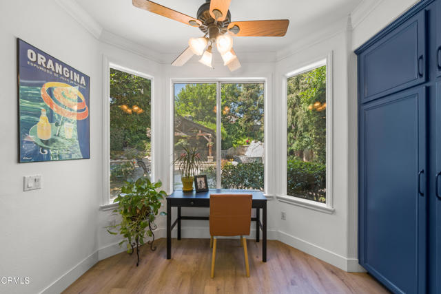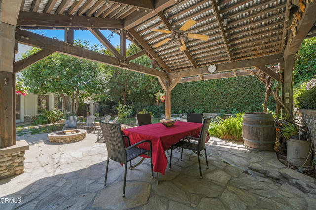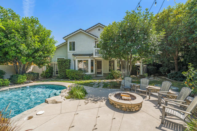 You'll fall in love with this home the minute you walk inside and then you'll gasp with delight when you walk outside to the back yard. Enter into a two-story high living room with fireplace and windows streaming with light. Flow into the dining area that looks out through French doors onto the back yard. Then dance into the expansive kitchen with a huge quartz preparation counter/ breakfast bar, Bosch gas cooktop and dishwasher, convection and microwave ovens and, again, a view to the back yard. The kitchen is wide open to the private nook and the family room with its own fireplace and wall of windows. This is where you start imagining all the great times ahead in the brilliantly imagined, secluded back yard. The centerpiece is the pool with a joyous waterfall cascading down from the rocks and from the overflow of the spa. The adjoining cabana with built-in BBQ and refrigerator allows you to get out of the sun and pool and into your lounge chair or hammock. From there you can enjoy the views of the garden area, the luscious trees and the welcoming patio with gas fire pit where you're sure to entertain many guests. Back inside, the main floor also contains a guest bedroom with attached bath and direct access to the side patio/RV parking area. Access the 3-car garage from the guest patio or through the separate laundry room. A wall separates the single-car side from the two-car side which has been converted into a recreation room with its own TV, desk, and cozy sitting area - a great place for teens to hang. This 300 square feet space is not included in the living area and can be easily converted back into the two-car garage it was originally. Up the winding staircase from the entry are the primary bedroom that looks out on the amazing back yard, an oversized 325 sf bedroom that faces south and two other bedrooms with lofts above the closets. The huge primary bedroom has high ceilings, a balcony that looks out over the back yard and an ensuite bath with separate soaking tub and shower, dual sinks and a walk-in closet with dressing area that is so large that it is currently serving as an office -seriously! The home has abundant storage throughout with two other walk-in closets - one in the extra-large bedroom and one below the winding staircase on the main level. This wonder is located in the sought after community of North Alta Loma with easy access to freeways, shopping and dining. Move right in - it's in mint turnkey conditi