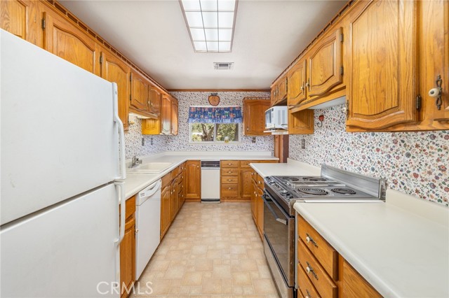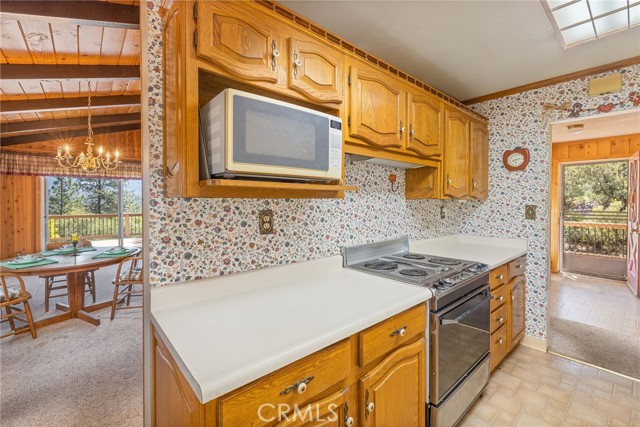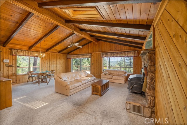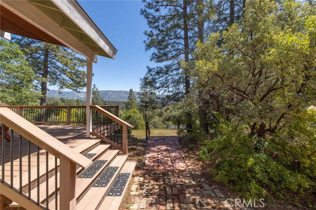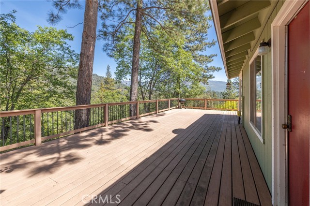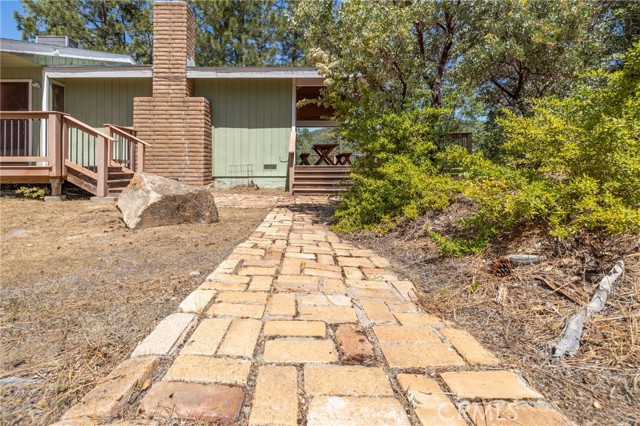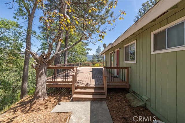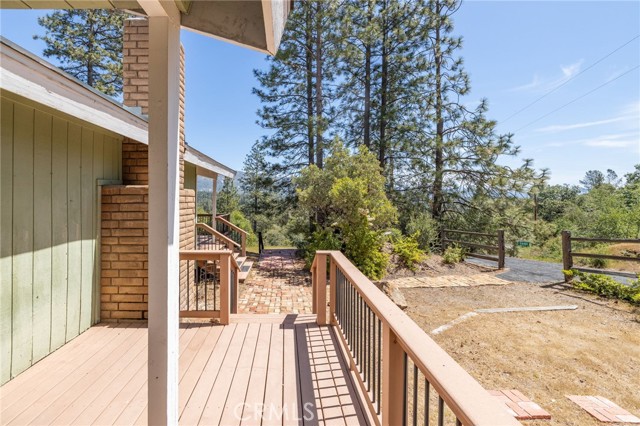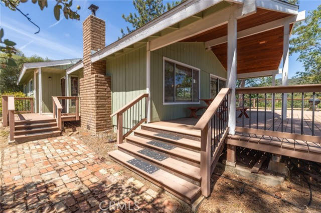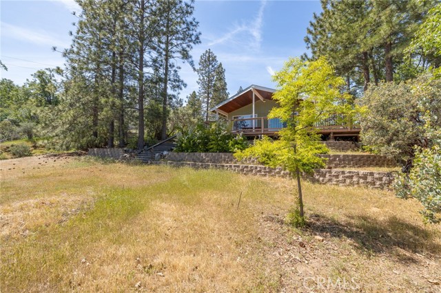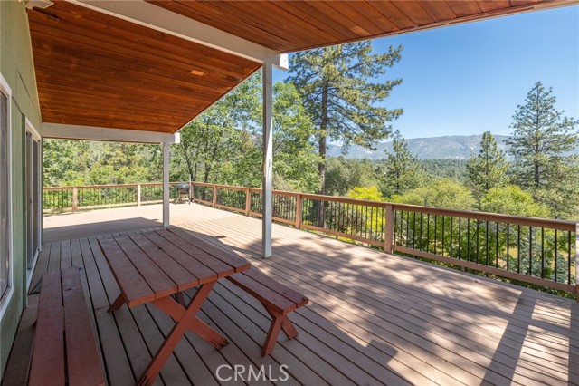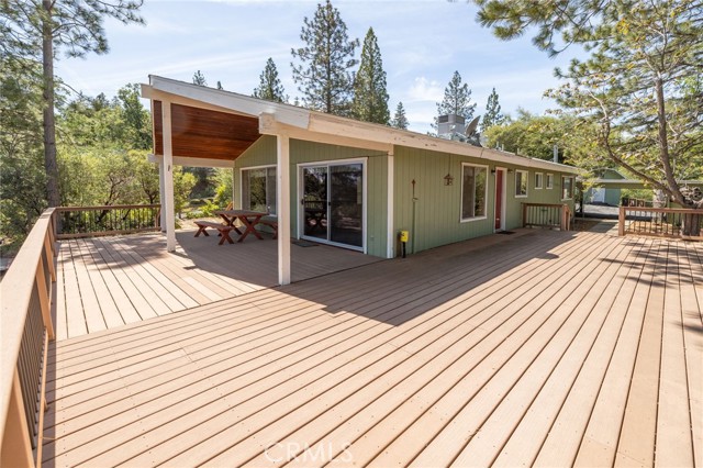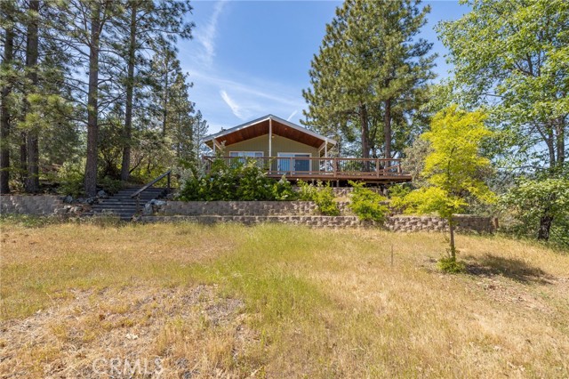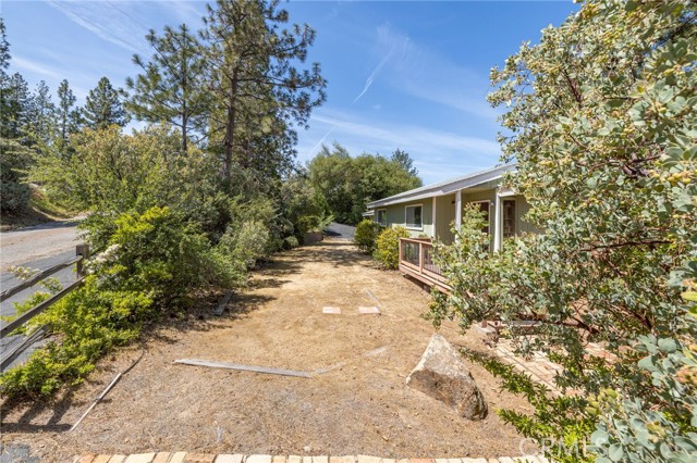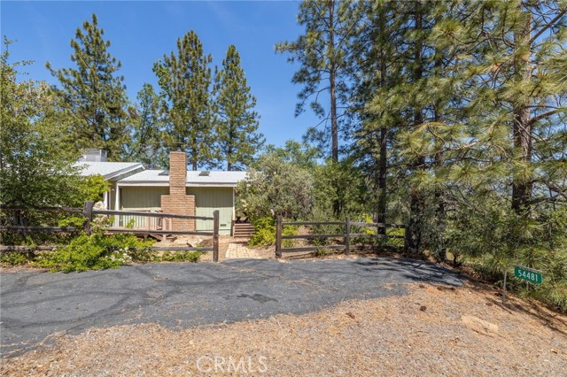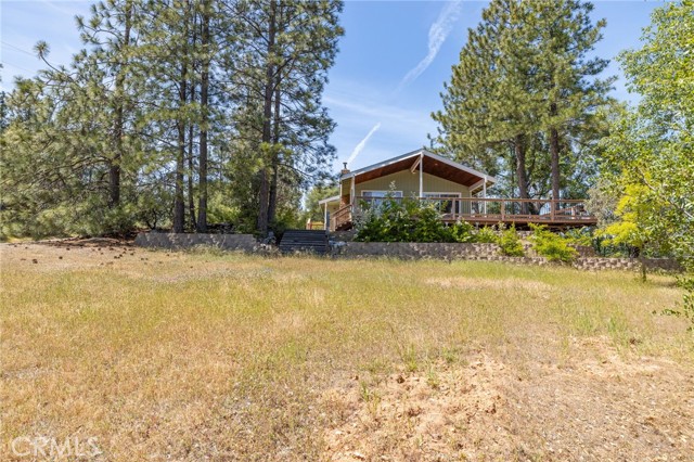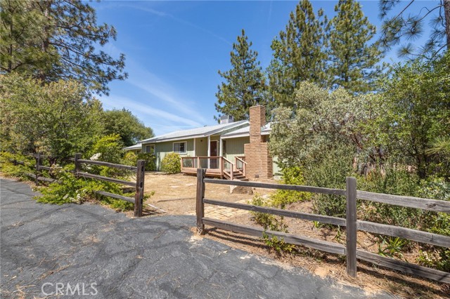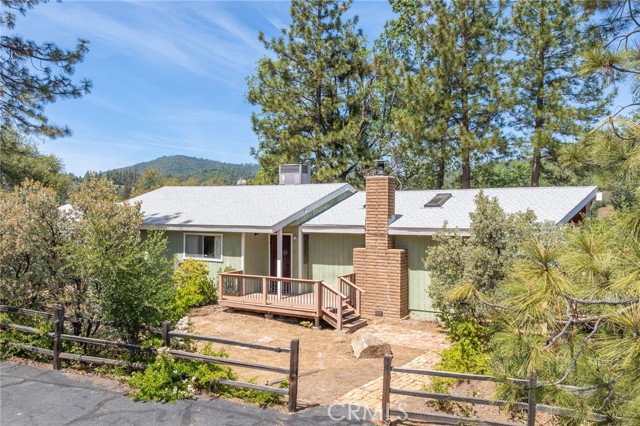 THE MOUNTAINS ARE CALLING! Featuring approximately 2,390 square feet (differs from tax records, buyer to verify if concerned) 3 bedrooms and 2 bathrooms. The living room offers vaulted, wood ceilings, 2 skylights, large windows that frame the surrounding mountain landscape, and a wood-burning fireplace that adds warmth and comfort to the space on cooler days. Enjoy the spacious Trex type decking ideal setting for relaxing, entertaining, stargazing, and taking in the surrounding natural beauty offering expansive views of Goat Mountain and Peckinpah Ridge. . Bathrooms are finished with granite countertops. The converted garage is currently used as a family room, providing additional flexible living space. One covered parking space and an outdoor kitchen area that could be used for entertaining. A storage shed is also included for your yard tools or sports equipment. The property is situated on a semi-usable parcel with mature pine, oak, and manzanita trees, and backs up to Little Finegold Creek, enhancing the sense of privacy and connection to nature. Conveniently located near Yosemite National Park and Bass Lake, this property offers versatility as a primary residence, vacation home, or investment opportunity.