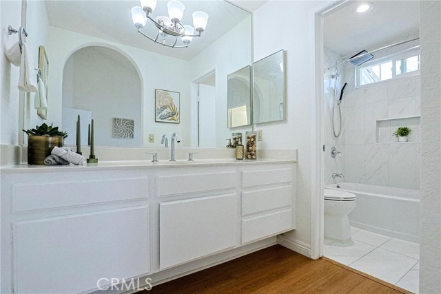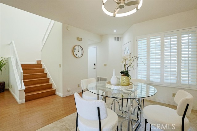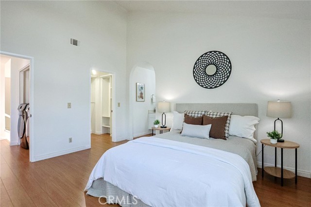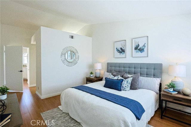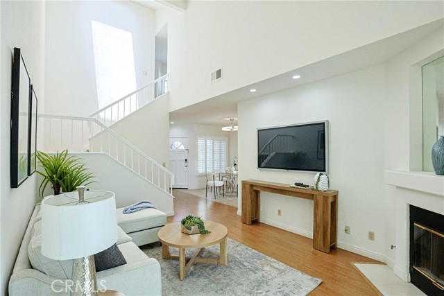 Step into elevated living in the highly sought after Las Palmas community of Westpark. This beautifully designed townhome offers the perfect blend of style, comfort, and convenience, featuring two spacious master suites and 2.5 baths within an open, light filled floor plan. From the moment you enter, you are greeted by soaring cathedral ceilings, elegant recessed lighting, and a warm, inviting living room anchored by a cozy fireplace. The kitchen is thoughtfully appointed with granite countertops, ample cabinetry, and modern appliances, making it ideal for both everyday living and entertaining. A stunning skylight above the staircase floods the home with natural light, creating a bright and airy atmosphere throughout. Step outside through the sliding glass doors to your private enclosed patio, perfect for morning coffee, evening unwinding, or hosting intimate gatherings. Upstairs, both master suites offer vaulted ceilings and generous space. One suite features a walk in closet and convenient enclosed laundry area, while the other boasts a dual sink vanity and an expansive mirrored closet. Enjoy the convenience of an attached two car garage and an unbeatable location just minutes from John Wayne Airport, top rated University High School, and University of California, Irvine. Residents of Las Palmas enjoy resort style amenities including pools, spas, barbecue areas, tennis and basketball courts, lush greenbelts, and scenic walking paths. With no Mello Roos and an exceptional location, this is a rare opportunity you do not want to miss.